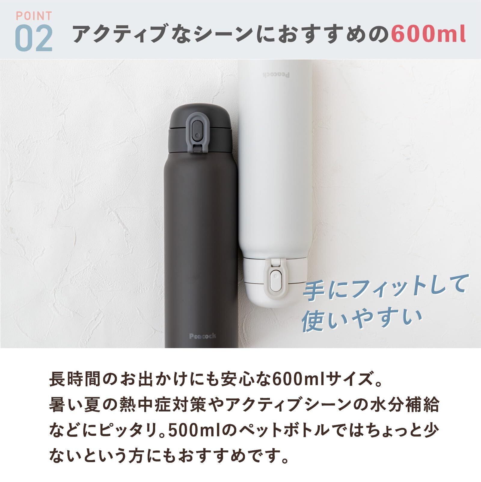 ピーコック魔法瓶工業(The-peacock) ピーコック ワンタッチマグボトル チャコールグレー 600ml 水筒 保温 保冷 魔法瓶 AKT-60 HCH