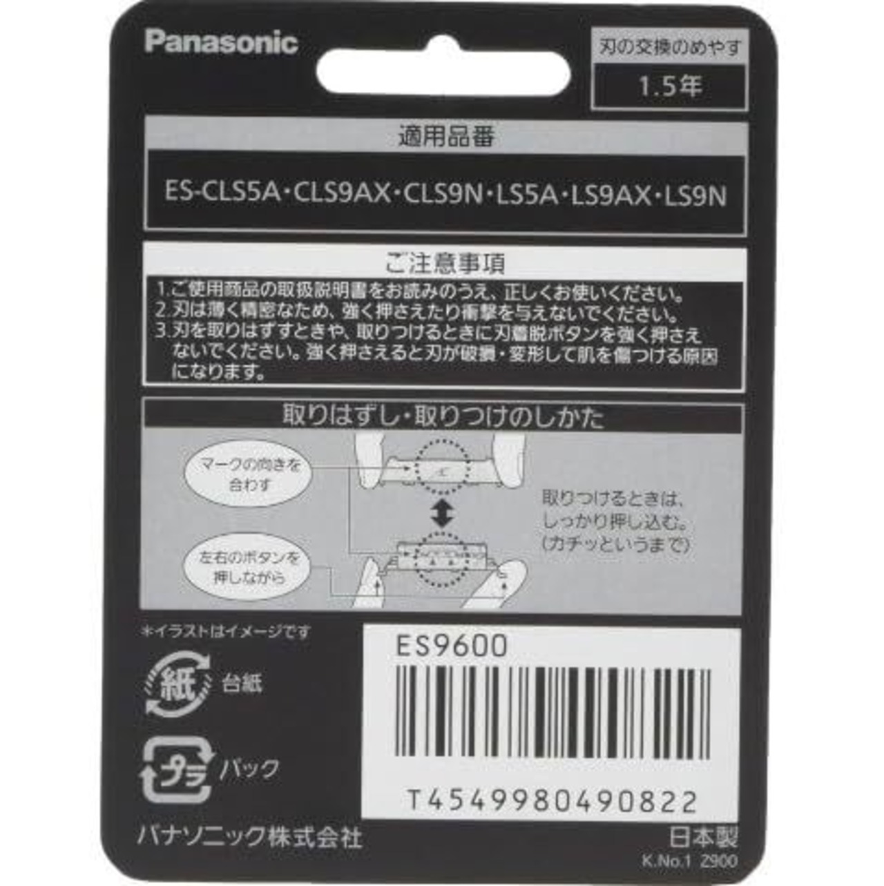 カミソリの刃と同じように、刃は使うことによって磨耗します。外刃は約1年、内刃は約2年での交換が目安です。新しい替刃に交換すれば、買ったときの剃り味に回復し、心地よく使用できます。快適な剃り味を楽しんでいただくために、定期的な刃のお取り替えをおすすめします。 【対応機種】 ES-CLS5A、ES-CLS9AX、ES-CLS9N ES-LS5A、ES-LS5B、ES-LS5C、ES-LS5P、ES-LS5Q、ES-LS9AX、ES-LS9BX、ES-LS9CX、ES-LS9N、ES-LS9P、ES-LS9Q ※ご購入の際は、メーカー、本体型番、形状等をご確認ください。