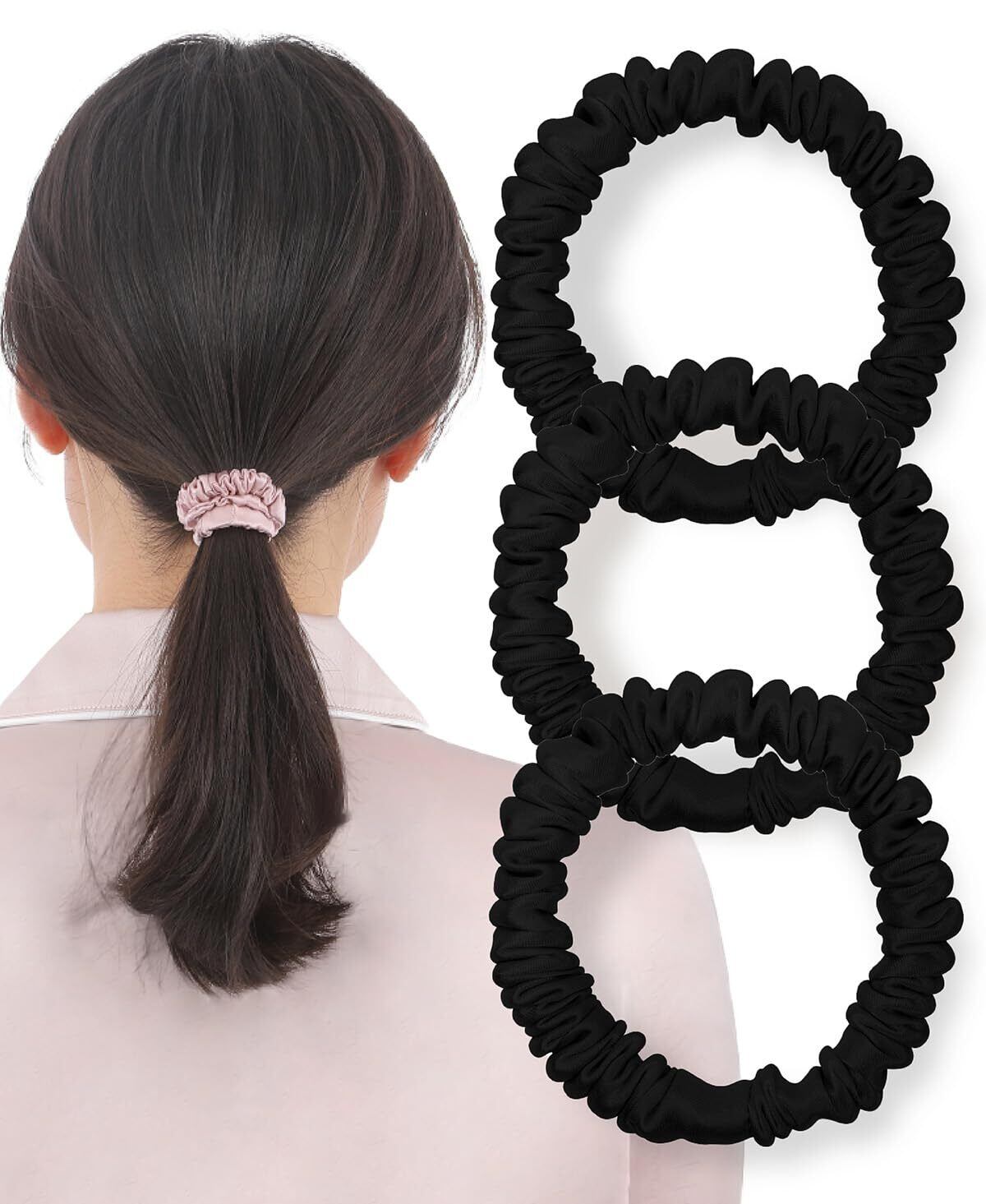 【ヘアケアのプロ監修】 シルク ヘアゴム シュシュ 髪ゴム シルクゴム 跡がつかない SILK100% おしゃれ 太め 3個セット (ブラック)