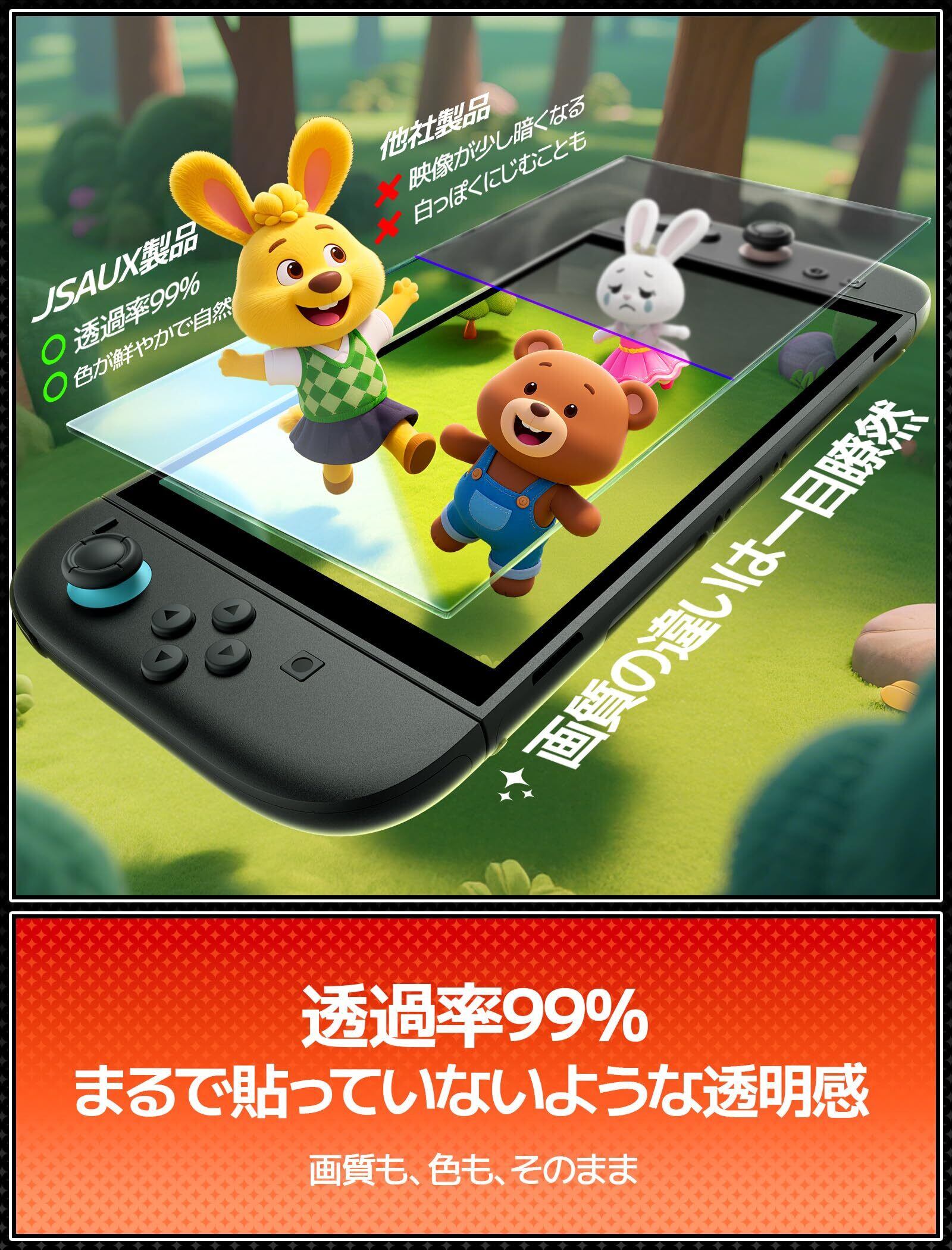 【高透明・鮮明な画質】99%の透過率により、色彩や明るさを損なうことなく、ゲーム本来の美しさや細部の描写をそのまま楽しめます。