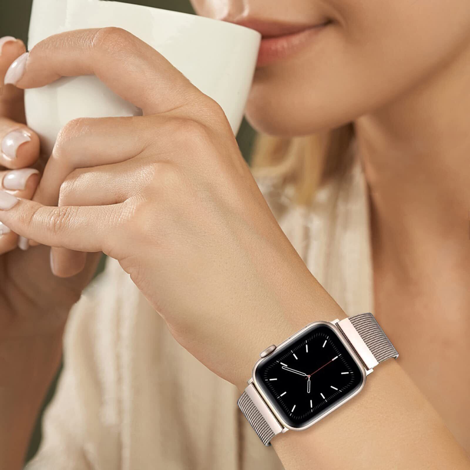 CAERMA コンパチブル アップルウォッチ バンド 38mm 40mm 41mm 42mm 44mm 45mm 46mm 49mm コンパチブル Apple Watch バンド ステンレス留め金製 男女兼用 長さ調節 強力な磁 通気 メッシュ ベルト コンパチブル Apple Watch Series 10/9/8/7/6/5/4/3/2/1/SE/Ultra 対応(42mm(Series 10)/41/40/38mm, スターライト)