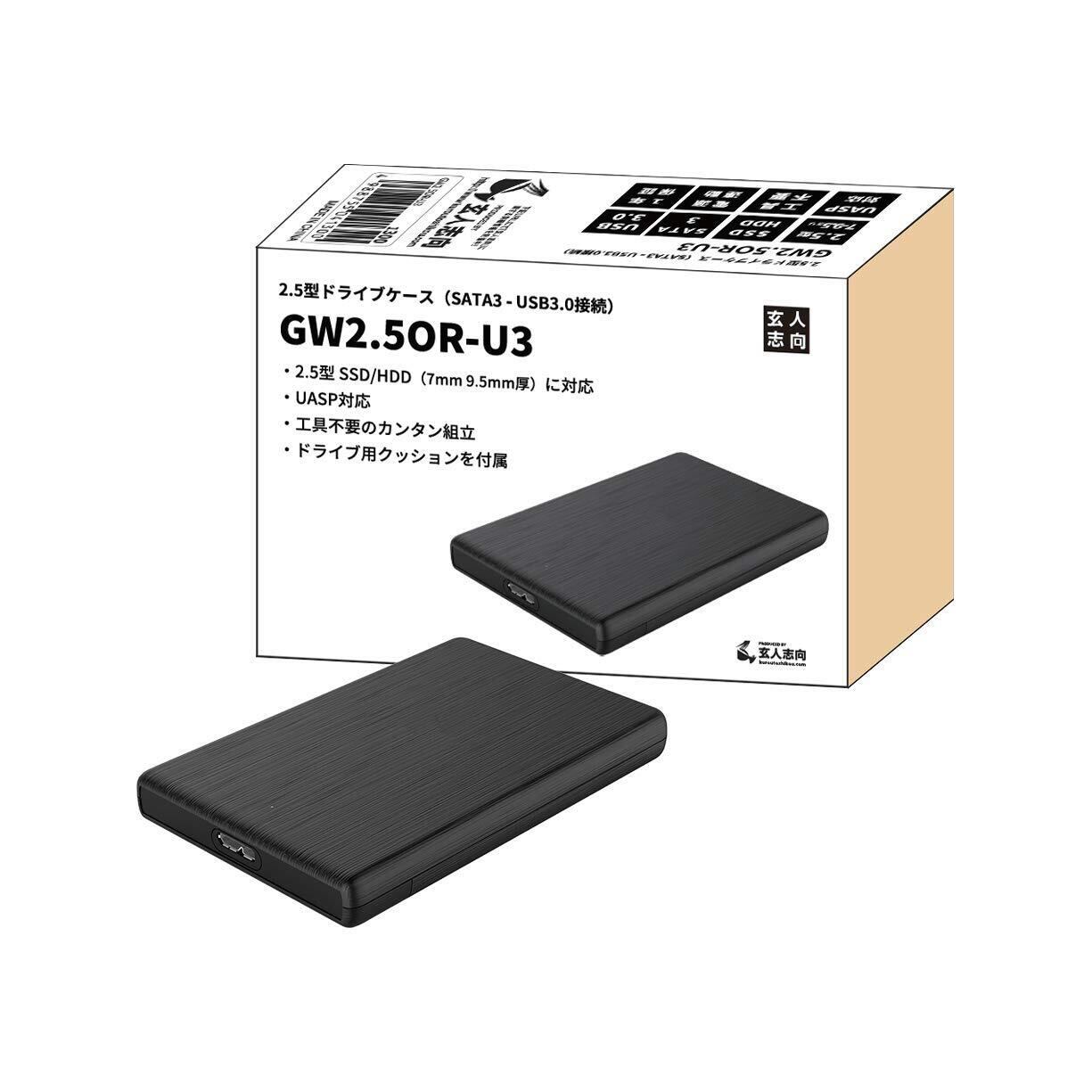 玄人志向 2.5型 HDD ケース / SSD ケース USB3.0接続 SATA 3.0 ハードディスクケース UASP対応 GW2.5OR-U3