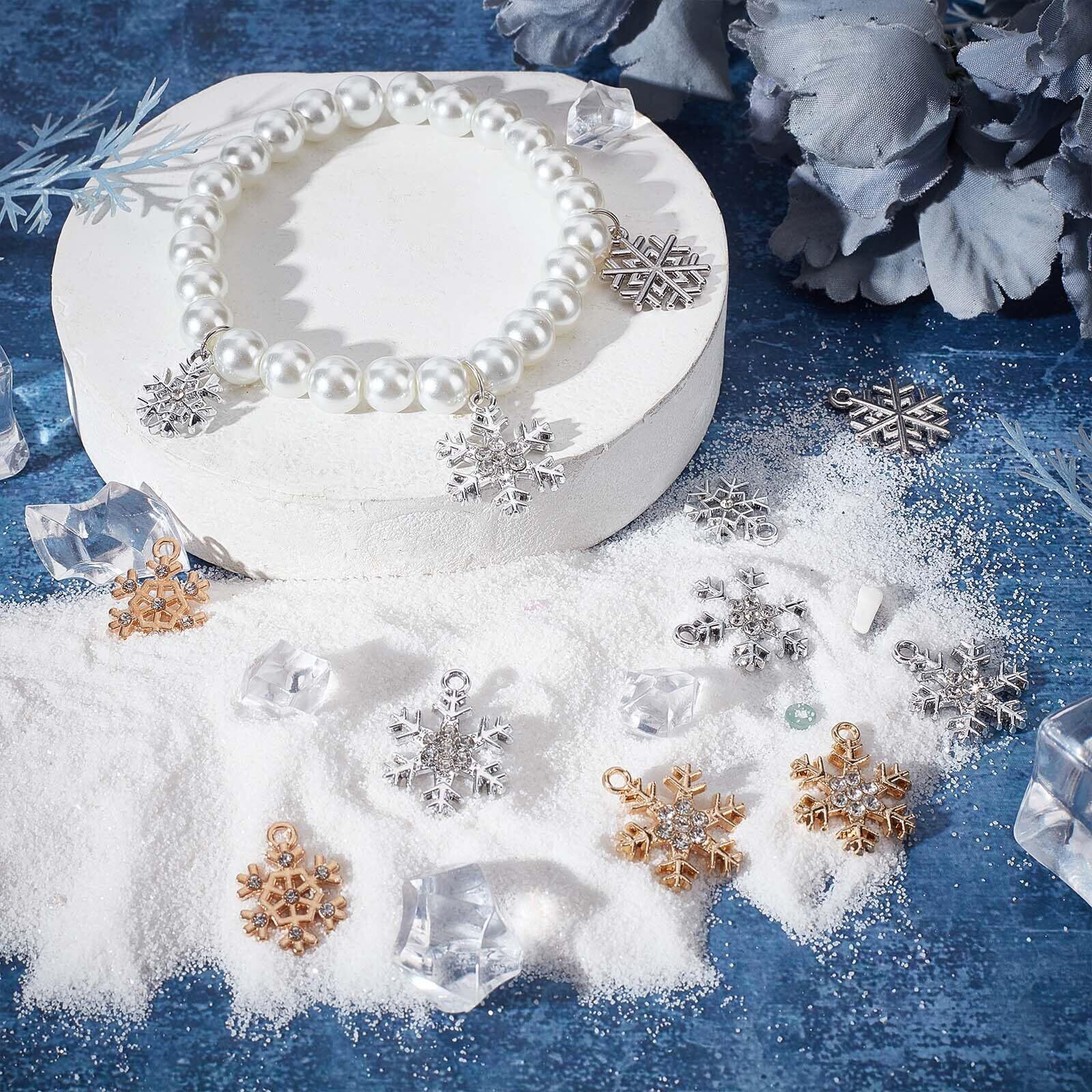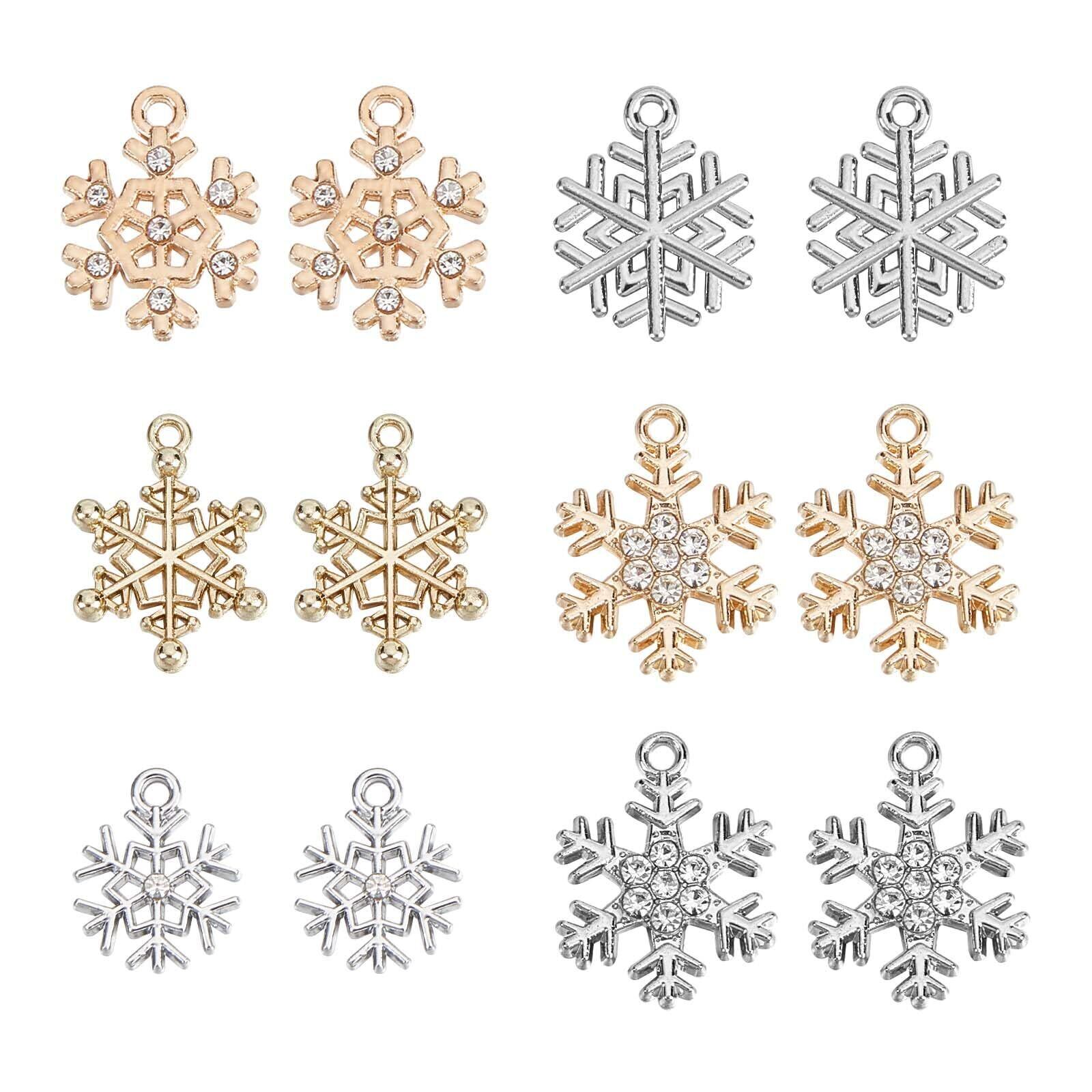 6 スタイルのウィンターチャーム: 6 スタイルのスノーチャーム, 2色展開, 日常生活に便利です. ラインストーンが付いたスノーフレークチャームが4種類あります。 あなたのジュエリーをより人目を引き、輝かせます。