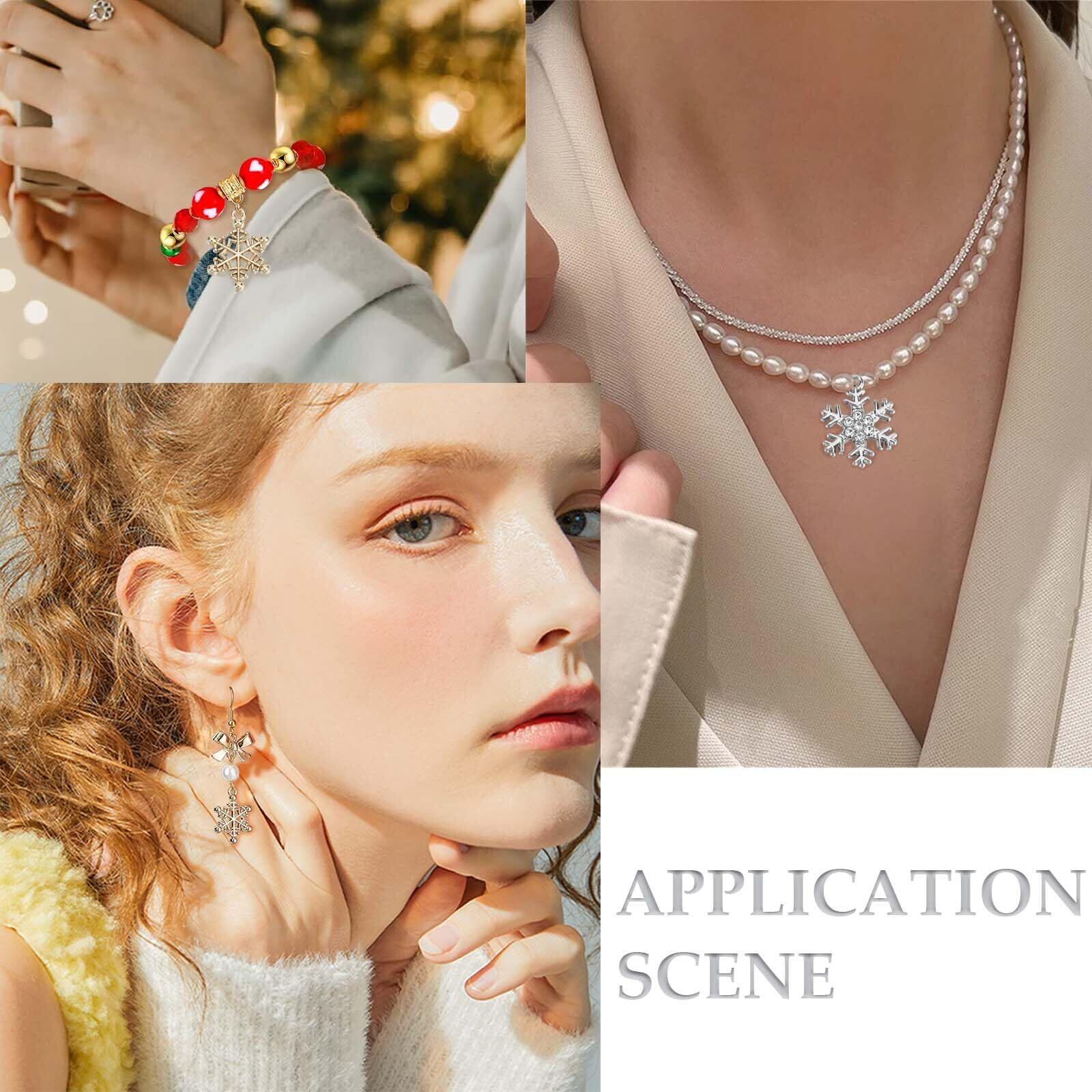 高品質素材: スノーフレークチャームは合金とラインストーンで作られています。 色あせたり変形したりしにくい. ラインストーンは魅力をより輝かせ、パーソナライズされたジュエリーの制作に適しています.