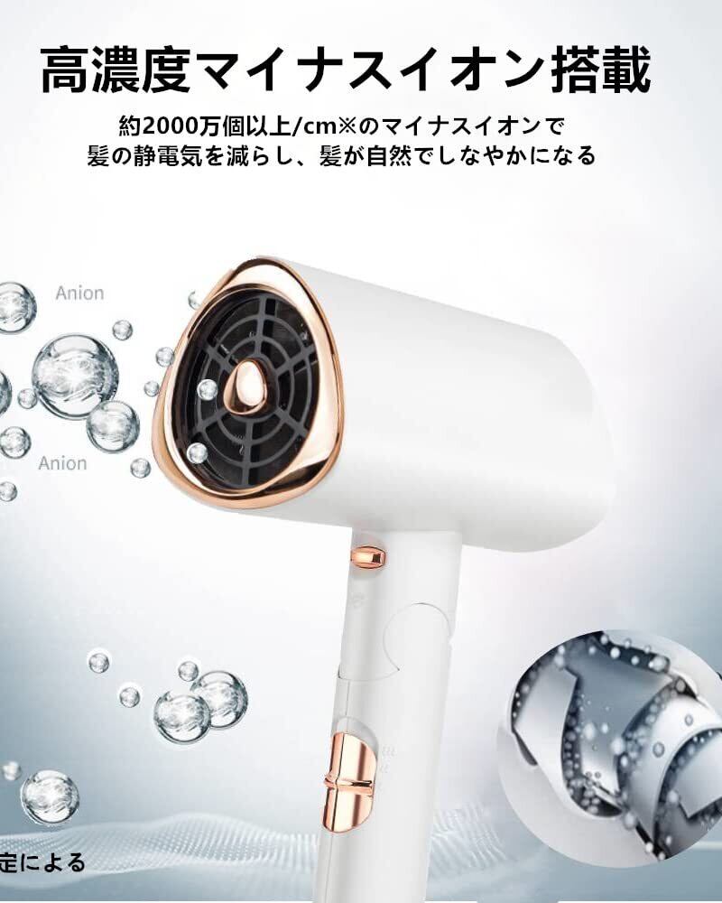 2.【2000万マイナスイオン、滑らかな髪質に】豊富なマイナスイオンにより、髪をしっとり潤いが浸透できることで、毎日寝グセ直しも簡単になります。弊社のヘアドライヤー(hair dryer)は2000万マイナスイオンが放出させ、髪にある正電荷をすみやかに中和し、静電気の発生を最大限に抑え、髪に潤いを与えながら、乾燥した髪を改善します。マイナスイオンドライヤーを長い間使用すると、髪をつややかにするだけでなく、指通りがよくまとまりの滑らかな髪質に回復できます。