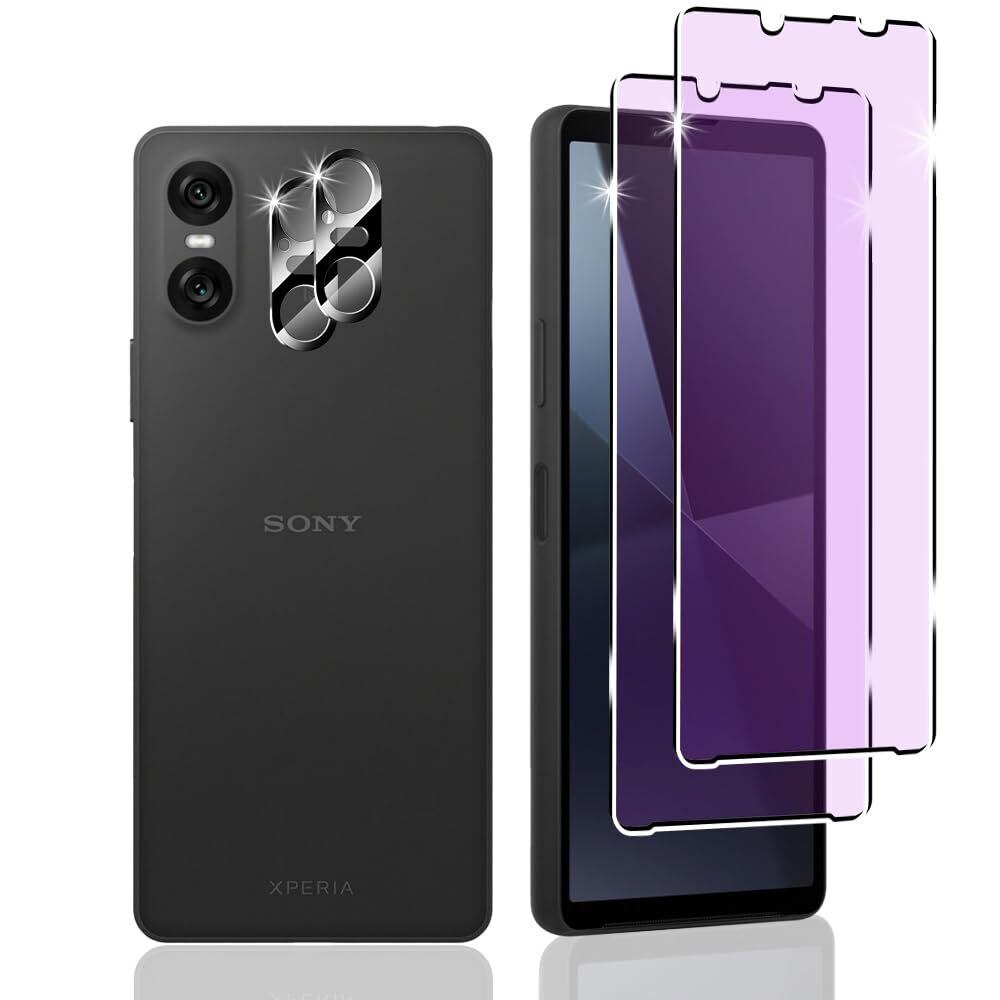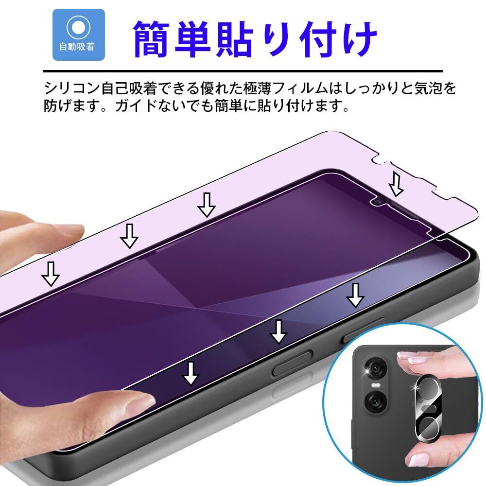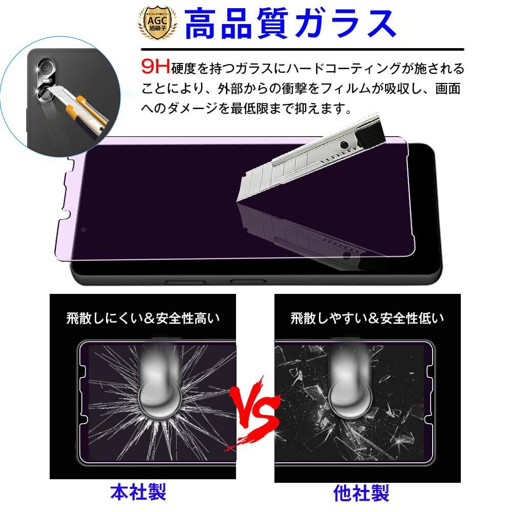 【4枚セット】対応 Xperia 10 VI 用 フィルム,ブルーライトカット 旭硝子 Xperia 10 VI 用 ガラスフィルム【2枚】+レンズ保護フィルム【2枚】 フルカバー Xperia 10 VI 用 強化ガラス 液晶保護フィルム 反射防止 目の疲れ軽減 エクスペリア10 VI 気泡レス 耐衝撃 9H硬度 ケースと相性バッチリ 防指紋 端欠け防止