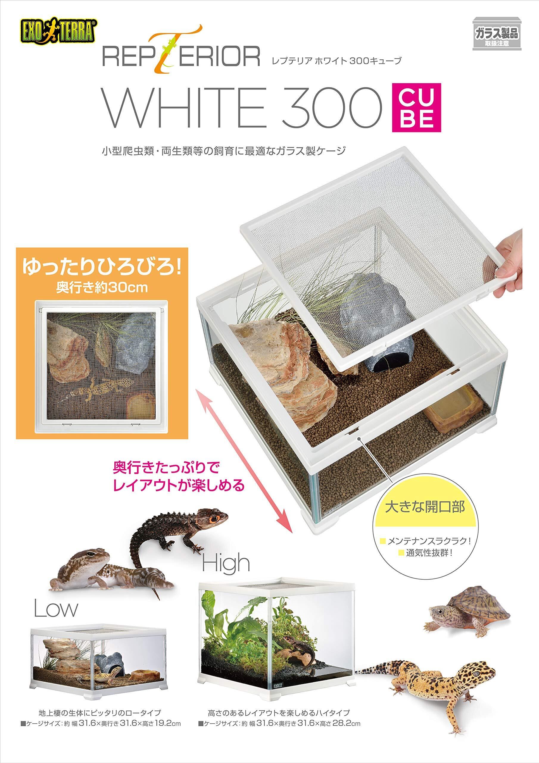 エキゾテラ GEX EXOTERRA レプテリアホワイト300CUBE Low 小型爬虫類 ガラスケージ ホワイトフレーム W31.6×D31.6×H19.2cm 爬虫類・両生類飼育ケージ