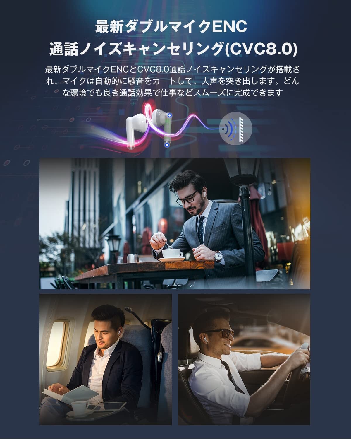 ✨【最新技術Bluetooth5.4 ダブルマイク ENC通話ノイズキャンセリ】新デザインと最新の技術が搭載している新年をお迎えるイヤホンは長年のイヤホン製造経験のもとで登場しました、!最新のBluetooth5.4チップと新世代のEDRチップはデータ転送速度、接続の安定性が一躍で、Bluetoothの不安定な点を改善致しました。人混みや駅、地下鉄などの場所でも安定した通信を保ち、自動ペアリングでき(初回接続し後)、音飛びや音途切れが起きにくく、音質の問題と遅延が大幅に改善する、それはすでに基本的な設置でした、BluetoothとEDRチップは良い通話の環境を立ちました、ダブルマイクのENCノイズキャンセリチップは通話の架け橋になり、通話中、使用車周囲のノイズをカットして、クリアな通話内容だけ通話相手に伝えます、ダブルマイク ENCノイズキャンセリです、効果も倍になり、ハンズフリー通話にも快楽になり、目の前に話すような通話体験ができます。 離ればなれでも小さいイヤホンで繋がります!