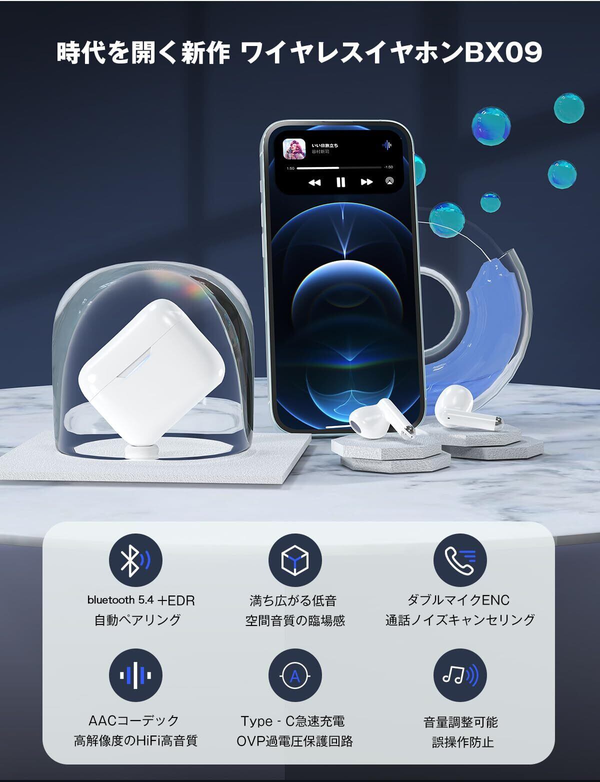 ワイヤレスイヤホン bluetooth 5.4 【ダブル マイクENC CVC8.0通話ノイズキャンセリ】自動ペアリング EDR 空間オーディオ音質 hi-fi音質 AACコーデック ブルートゥース ハンズフリー通話 無線 片耳 インナーイヤー タイプc OVP過充電保護 長時間 タッチセンサー 左右分離 フィット 通勤通学/散歩/WEB/テレワーク/ZOOM/電話
