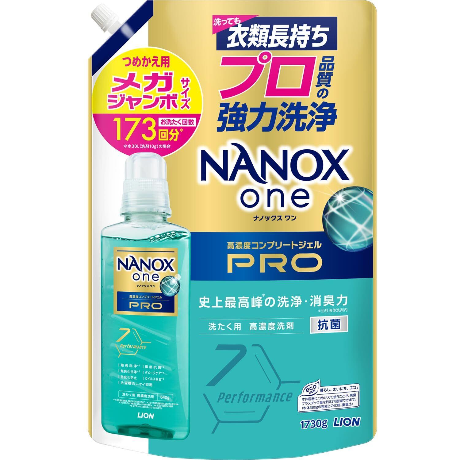 NANOX one プロ 詰替メガジャンボ1730g パウダリーソープ 史上最高峰の洗浄・消臭力 洗濯洗剤 色変化防止 抗菌 ウイルス除去 洗濯槽のニオイ抑制