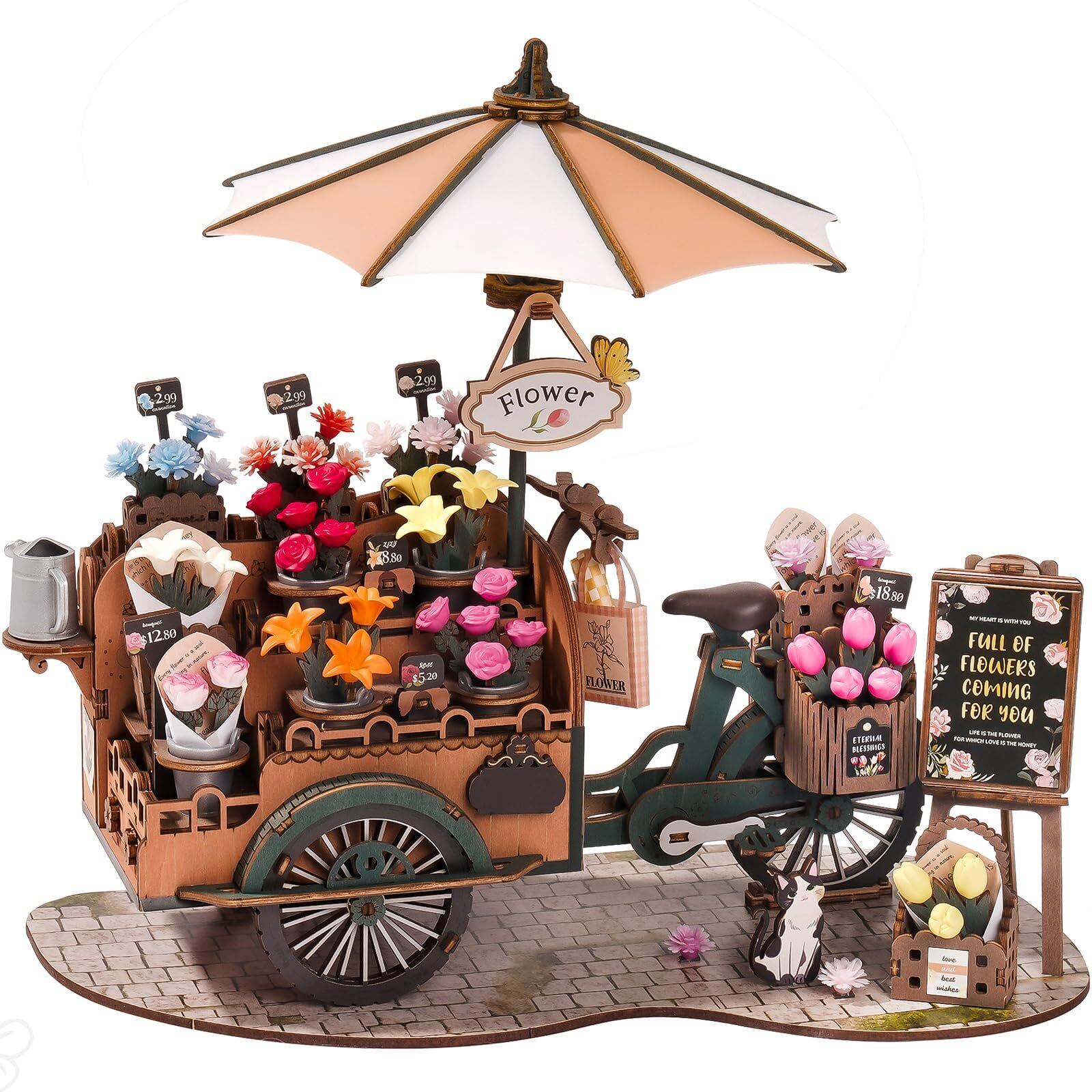 ROBOTIME 立体パズル 3D 木製 パズル ウッドパズル クラフト ブロッサム・カート 木製 DIY 組み立てキット 夏休み 工作キット 大人向け 子供向け ギフト プレゼントに最適 暇つぶし 癒し時間 インテリア