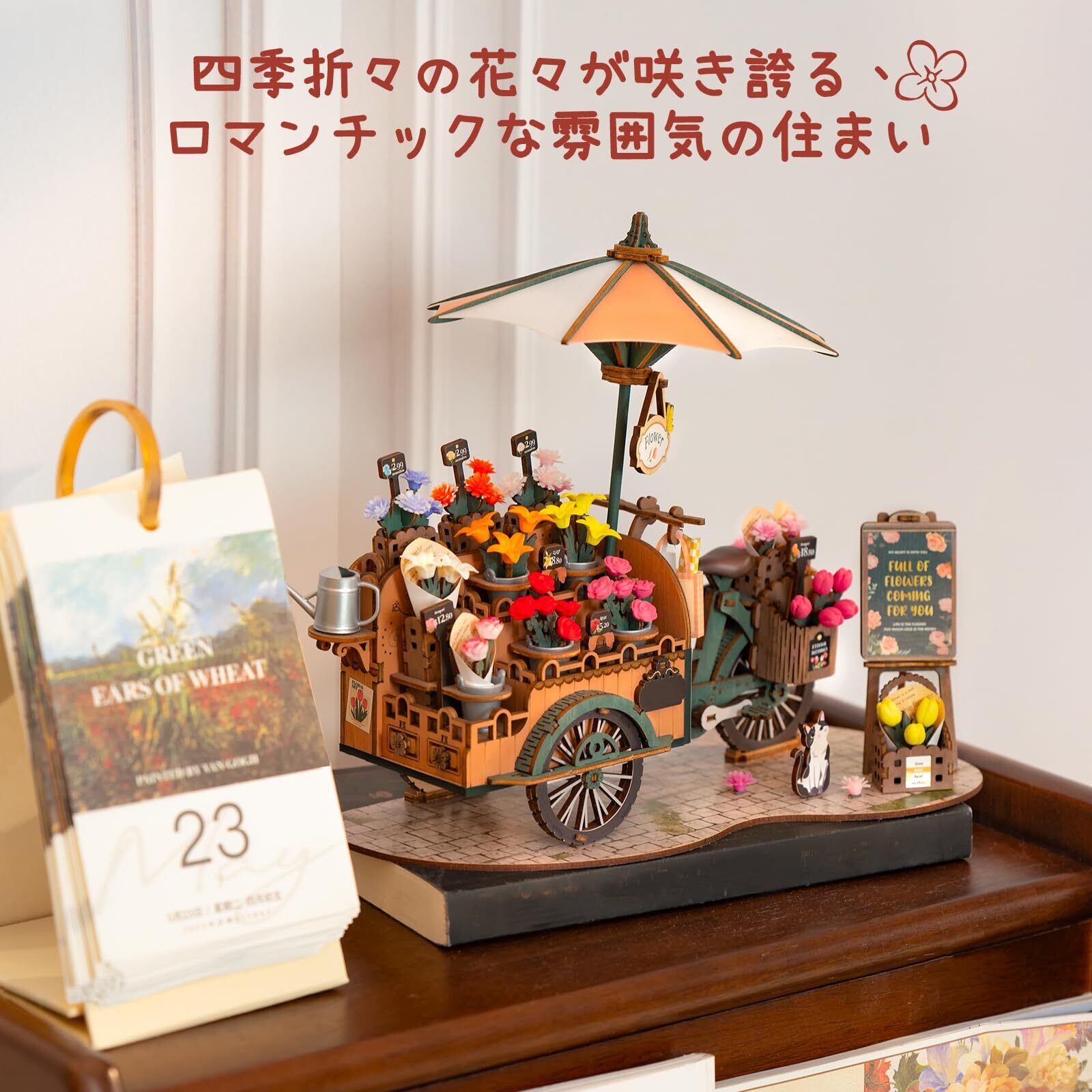 ROBOTIME ブロッサムカート (TGS03) 、この立体パズルは、治癒系花売りの車をテーマにしたDIY木製組み立てキットで、187個のパーツで構成されています。高品質な木材を使用しており、エコフレンドリーな設計が特徴です。精密にカットされたパーツとカラフルな装飾品を組み立てることで、リアルで魅力的なミニチュアを作り上げることができます。