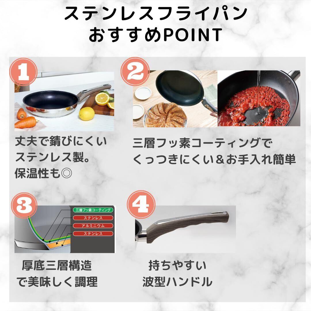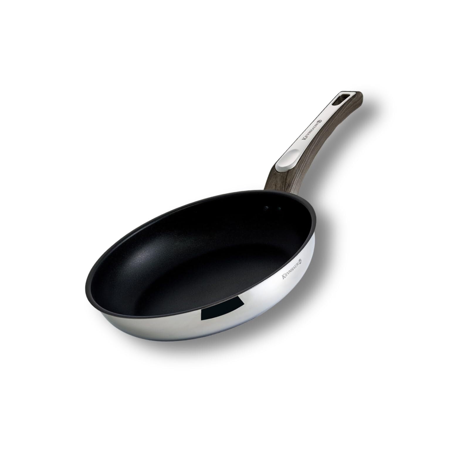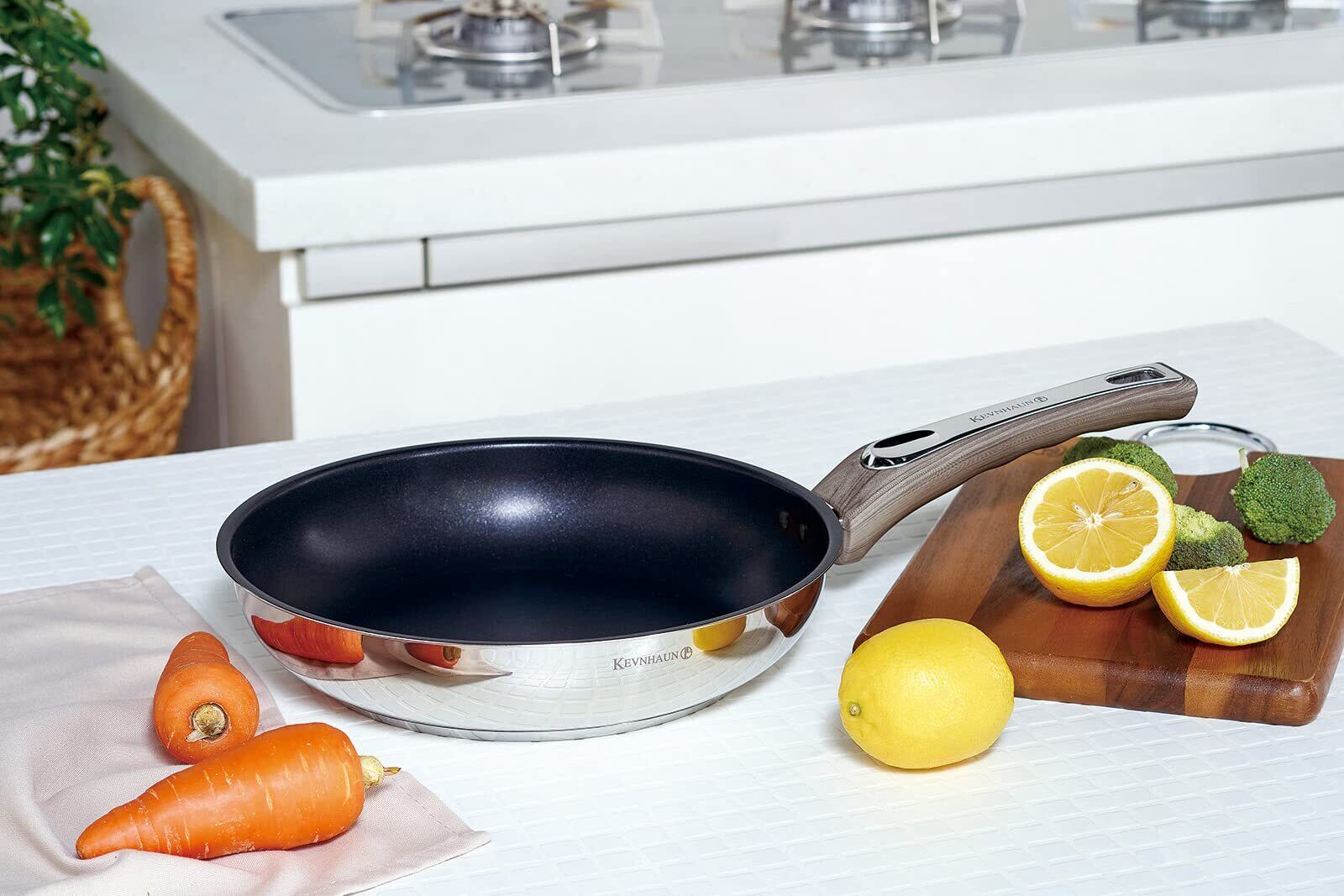 ケヴンハウン(Kevnhaun) ステンレスフライパン20cm IH対応 フッ素コーティング 木目調ハンドル 握りやすい波型ハンドル PFOAフリー 焦げ付きにくい シルバー パンケーキ KVFP20