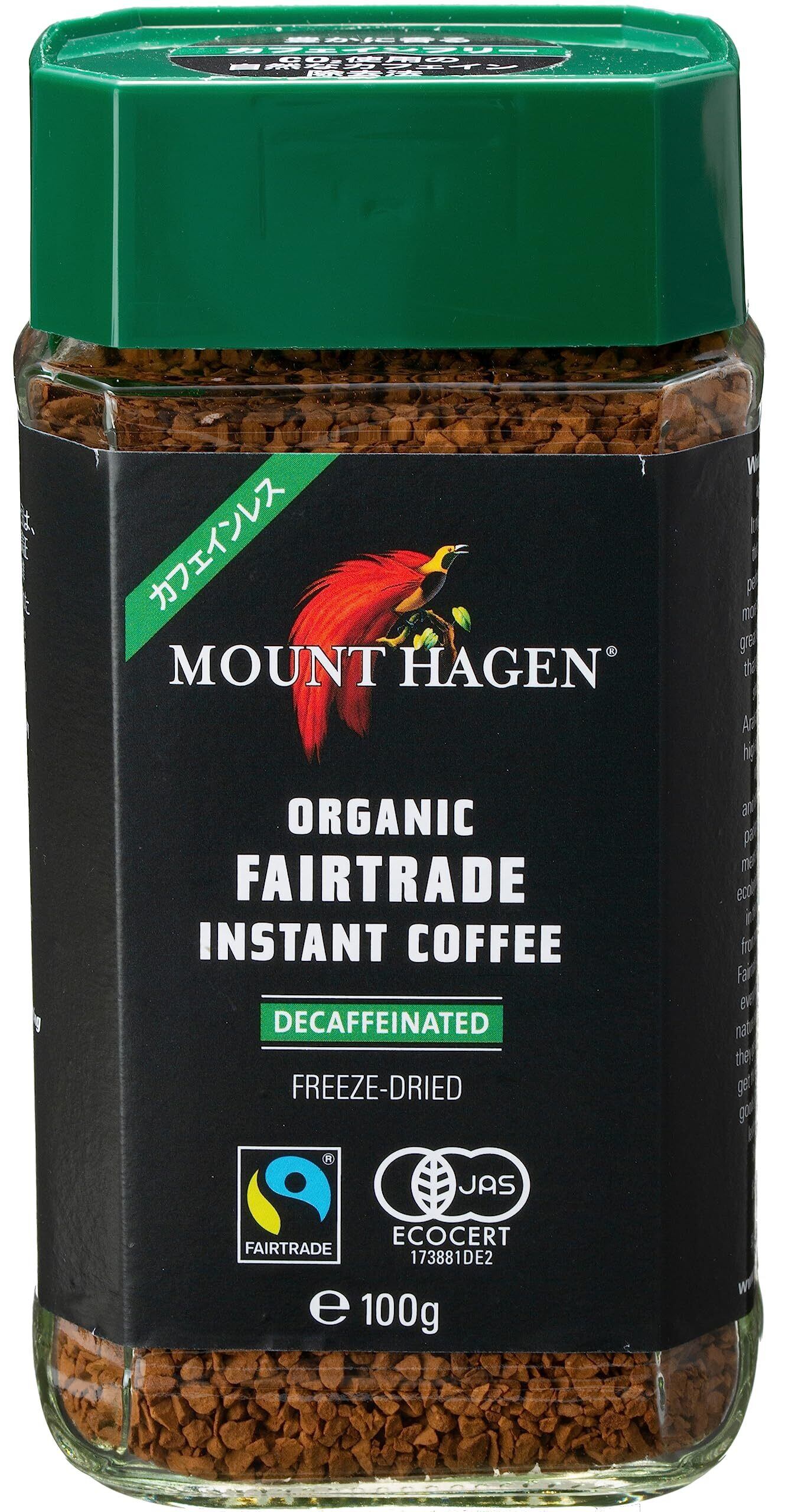 マウントハーゲン オーガニック フェアトレード カフェインレスインスタントコーヒー100g 自然なカフェイン除去プロセスで香りそのままカフェイン99.7%カット