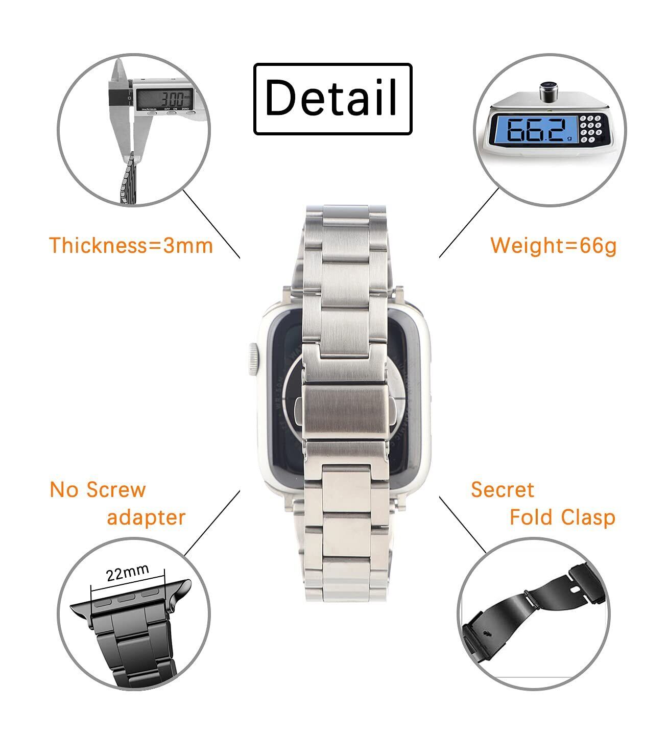 【素材】:これらのiWatchバンドは、プレミアムステンレススチール素材で作られており、優れた職人技で表面処理されており、AppleWatchをより高貴に見せます。