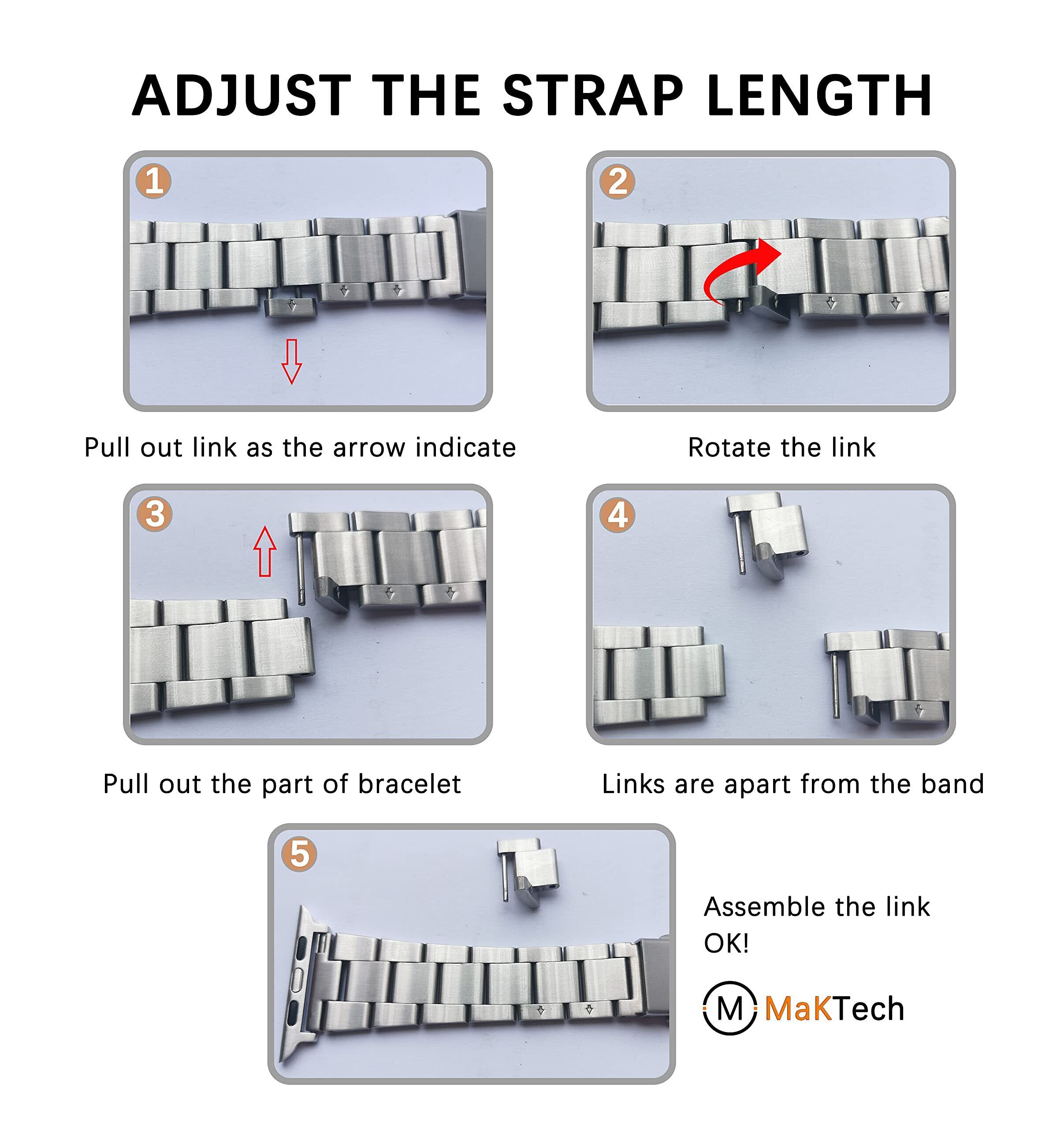 MaKTech ステンレス鋼の時計バンド、自己分解取り外し(工具不要)、3ピースメタルリンクブレスレットストラップ、 と互換性があるApple Watchシリーズ 10/9/Ultra 2/SE/8/7[2024]