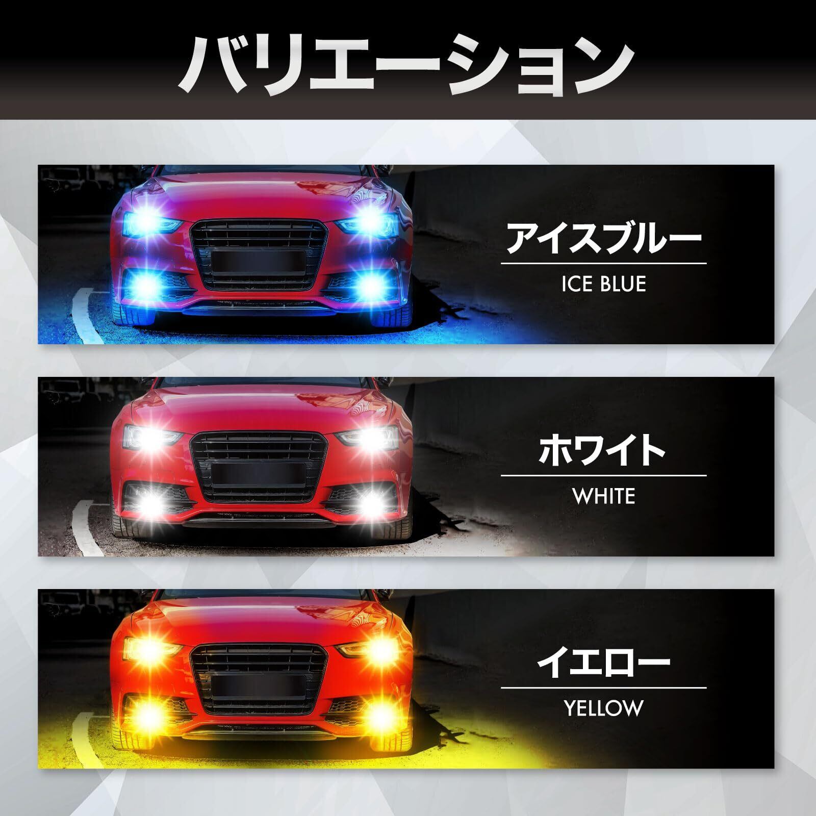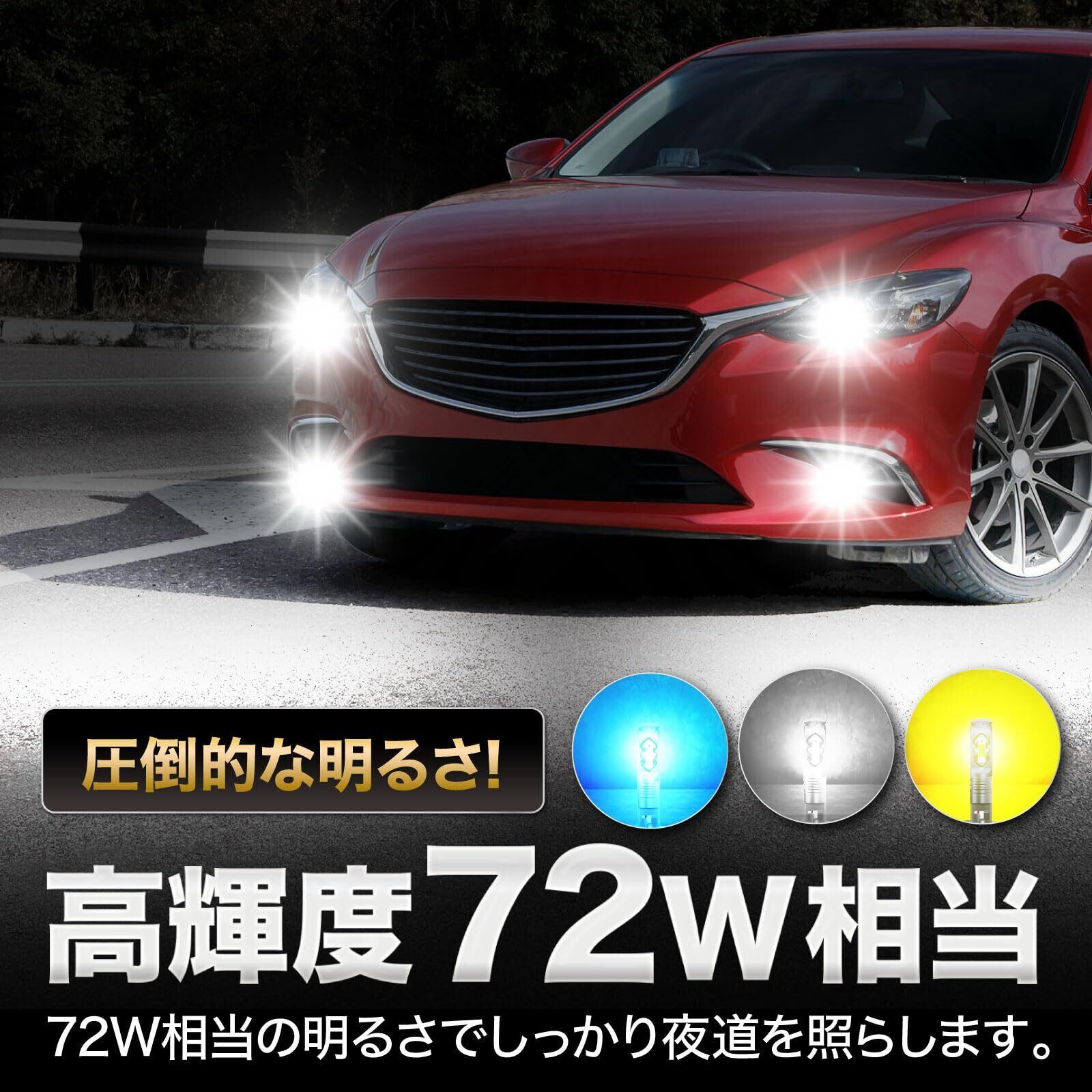 【仕様】12V / H1 / 72W / 3500lm×2(合計7000lm) / ホワイト(白) : 6000k、イエロー(黄色) : 3000k、アイスブルー(青) : 8000k / 2個セット ※12V用なのでトラックには使えません。