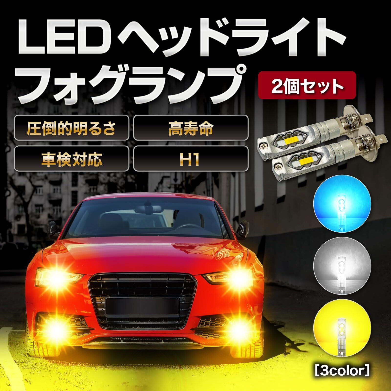 【華やかな輝き】ハイパワーでH1タイプのフォグランプ(ヘッドライト)バルブです。高輝度LEDでファッション性も高い社外品なので、ドレスアップ用のカスタムパーツとしてもおすすめです。