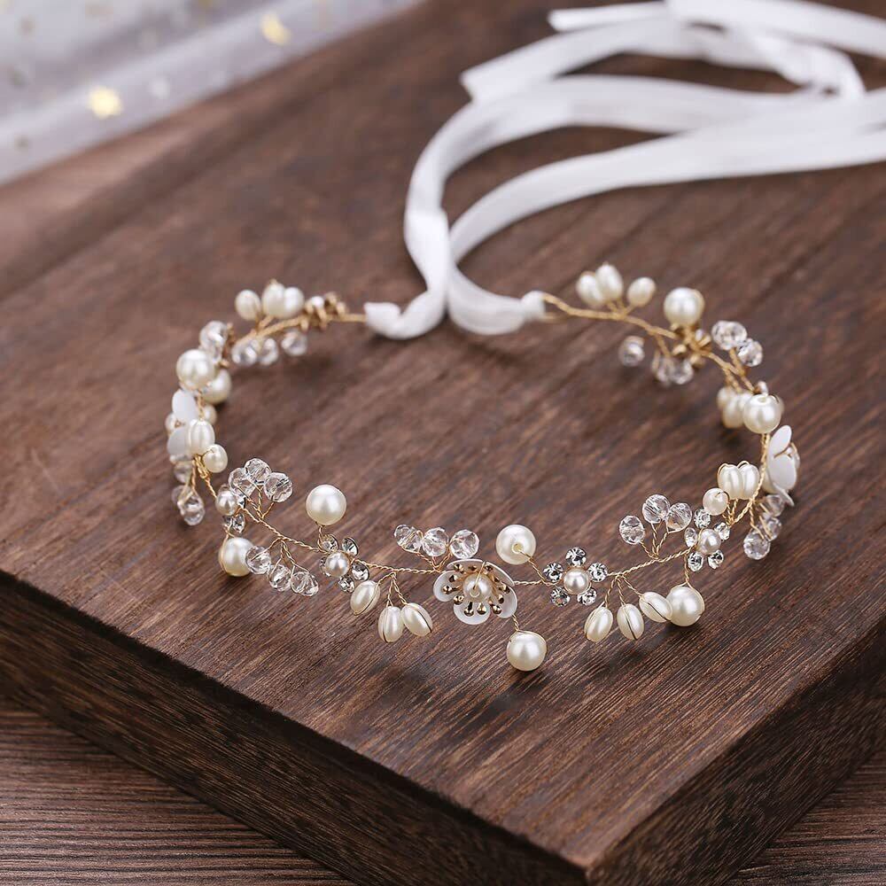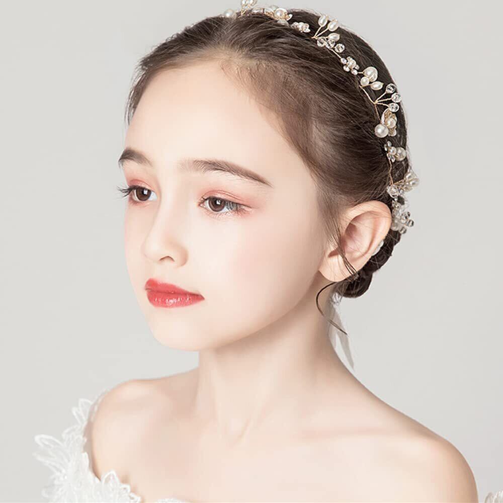 DFsucces パール 花飾り カチューシャ 花冠 ラインストーン 髪飾り フラワー ヘアバンド ブライダル 発表会 卒業式 入学式 女の子