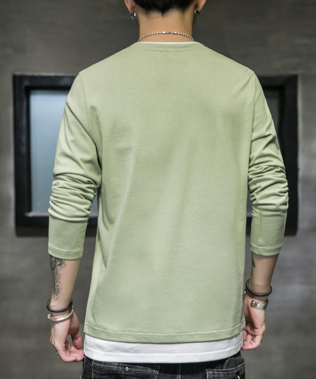 [SHANLIANG] tシャツ メンズ 長袖 無地 重ね着風 大きいサイズ 柔らかい肌触り おしゃれ 服 配色切替 ながそでtシャツ 上品 ファッション プルオーバー ロングtシャツ 春服 秋服 M-5XL 快適 伸びる カットソー 人気