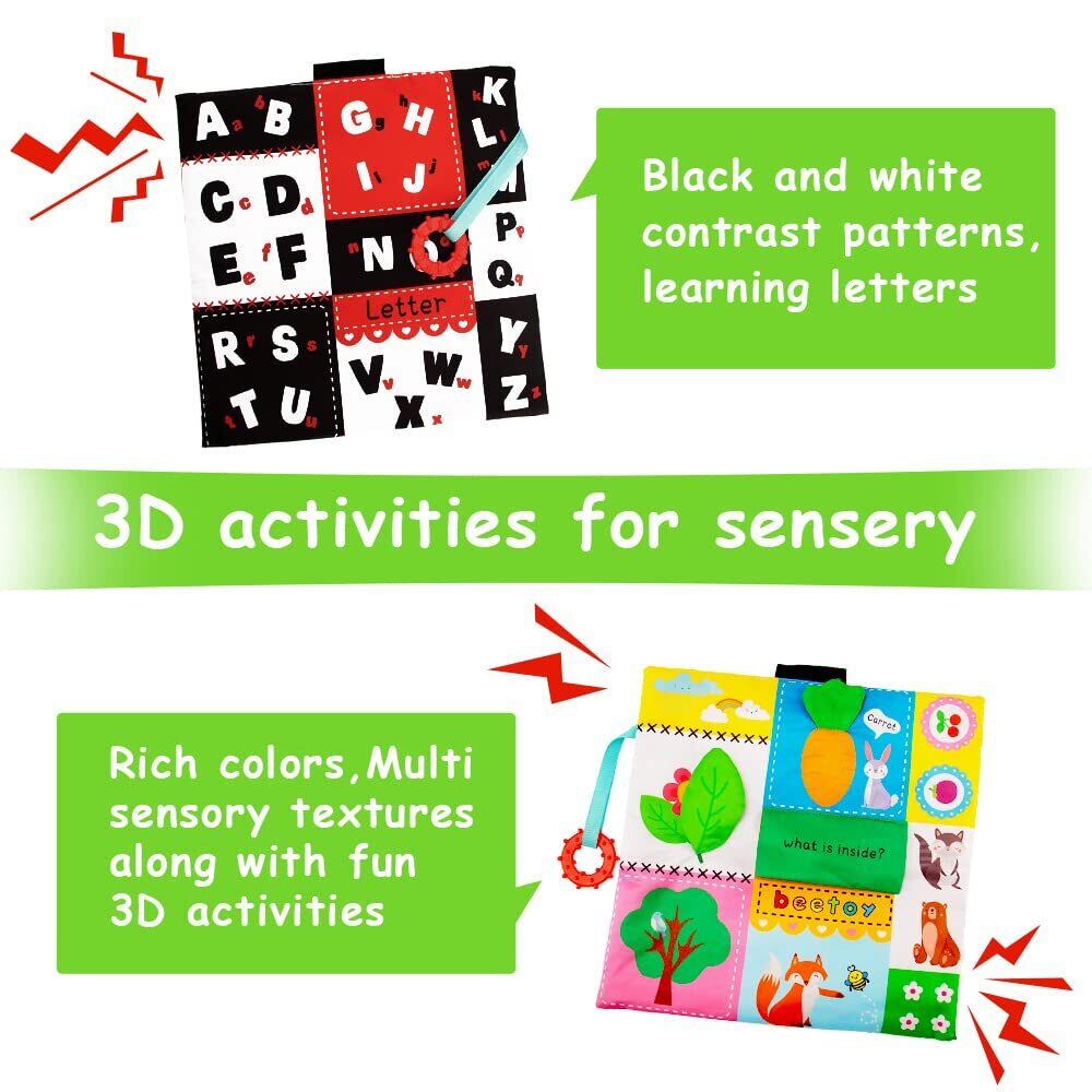 beetoy (ビートイ) タミータイム 赤ちゃんの鏡のおもちゃ 白黒のコントラスト模様 立体的なアクティビティプレイ カシャカシャと音がするおもちゃ 折り畳めるおもちゃ 知覚の発達 新生児 乳児 0~6ヶ月
