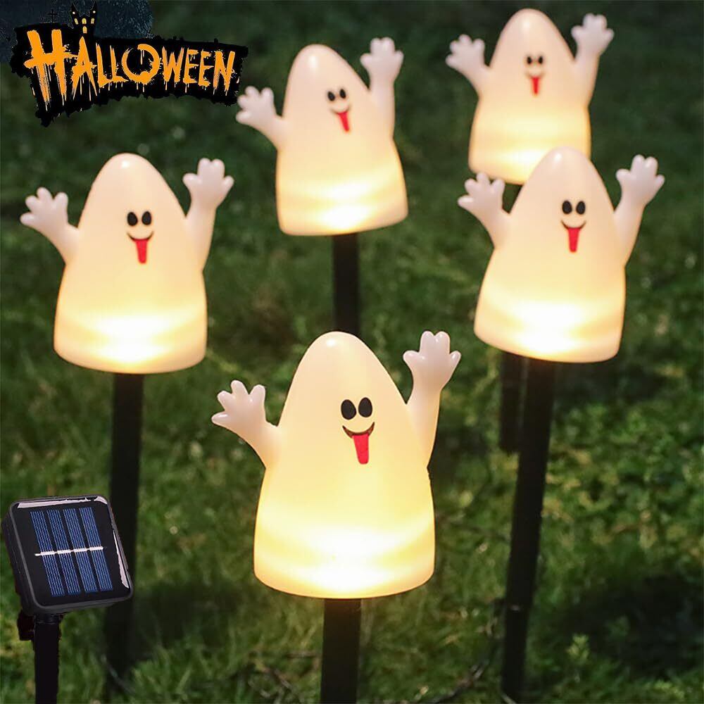 ガーデンライト ハロウィーン ソーラーライト ハロウィン 飾り ライト ハロウィン ゴースト 飾り 5個セット 太陽光発電 自動点灯 消灯 防水 室内 屋外 イベント 雰囲気作り ウォームホワイト (幽霊 1)