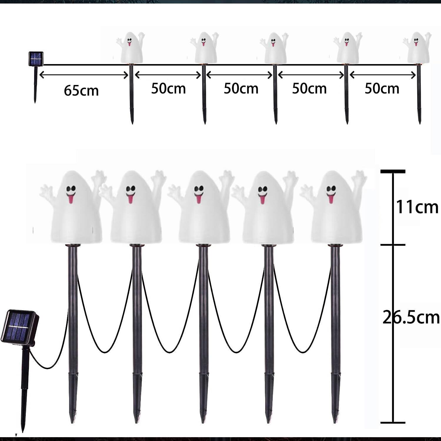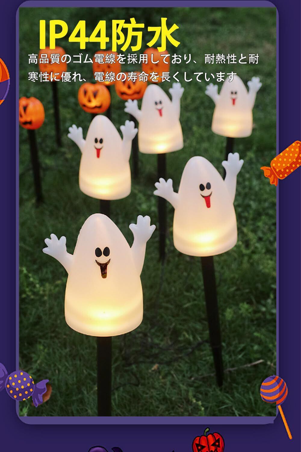 【 ハロウィン ゴースト 飾りライト】 ハロウィン ゴースト 飾り 光る ! このゴーストイトは5個セット、長さ3.2m、ソーラー充電式のLEDストリングライトです。