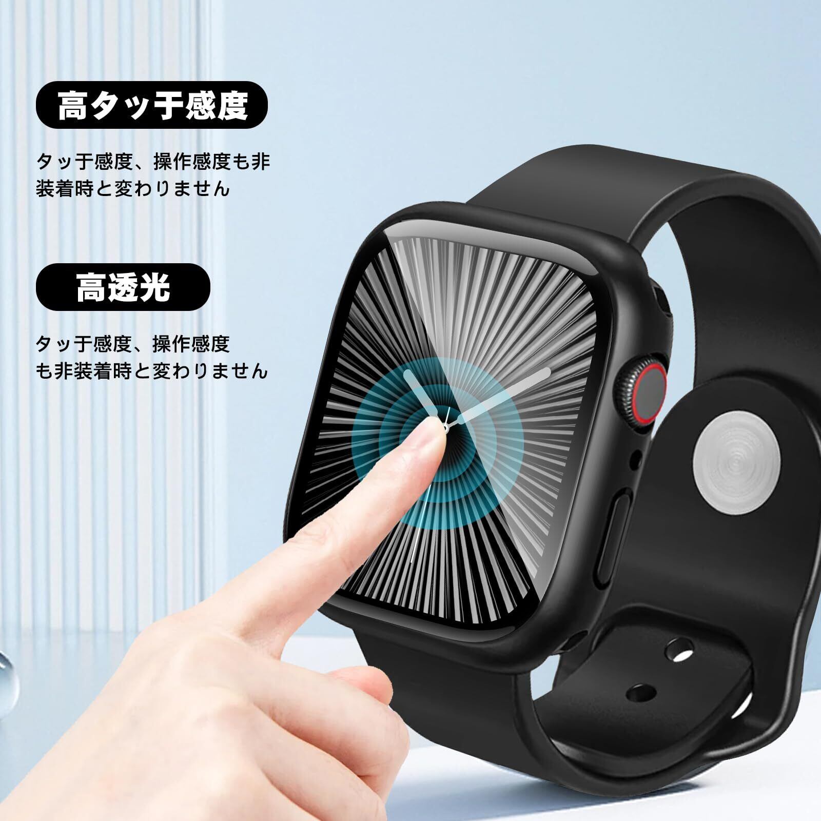 【高タッチ感度、高透過率・佩戴简单】このApple Watch ケースをつけたまま、タッチスクリーンに直接触れ、スピーカーやマイクもすべて簡単にアクセスできます。各ボタンは高いタッチ感度を提供して、スムーズで快適な操作を実現します。高透光率なアップルウォッチ カバーで、iWatch 元の画質と視覚を完全に復元します。 Apple Watchガラスフィルム+保護カバーの融合された革新的な一体型デザイン。取付け道具不要、本体の上から嵌めるだけで楽に装着できます。(取り付け後、タッチが敏感でない状況に遭遇した場合は、ケースをそっと押して空気を排出し、正常に使用できるようにしてください。)