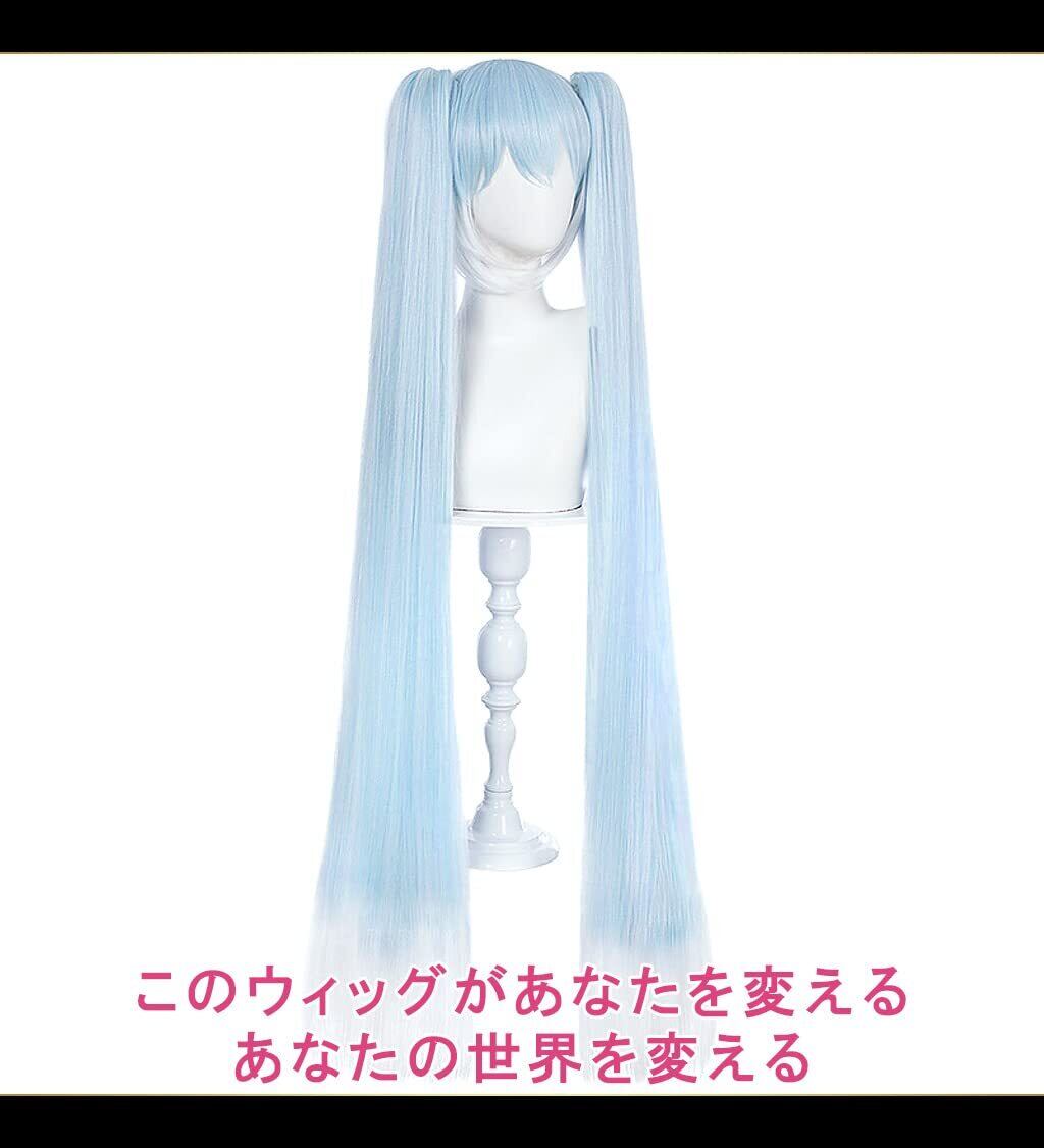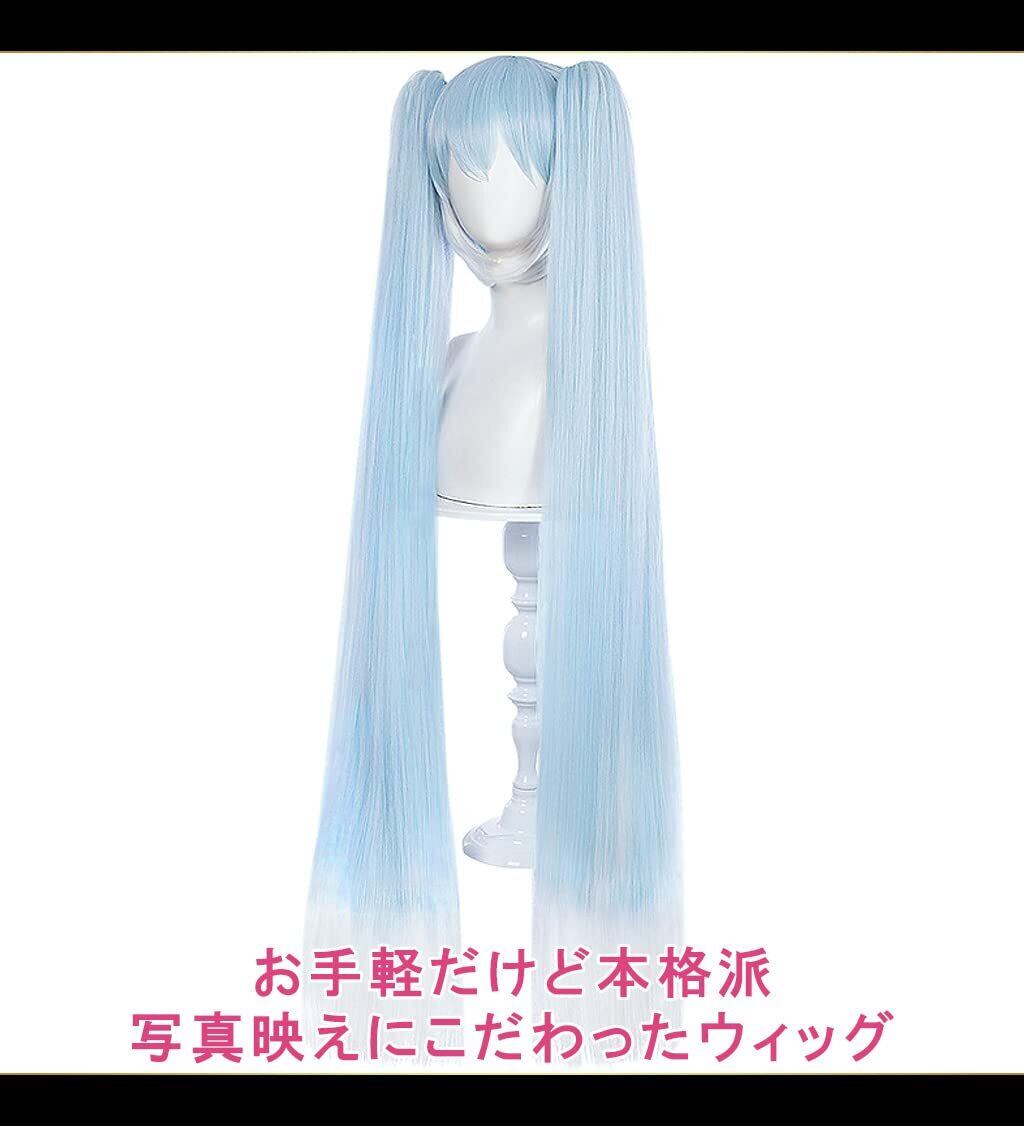 【 憧れのキャラにすぐ変身 】 水色~ホワイトのツインテールロングヘアをしたキャラクターのコスプレにおススメ。 このウィッグで憧れのキャラになりきれば、あなたに注目が集まること間違いなし。 ハイクオリティな質感・表現力のあるカラー・美しいヘアデザインを追求し、写真映えするウィッグに仕上げました。 SNS映えする華のある写真を撮りたい方におススメ。
