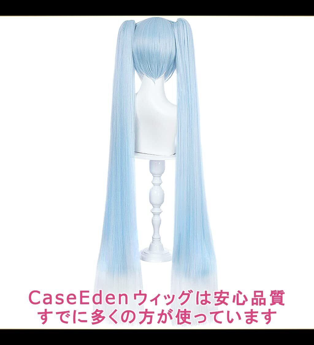 CaseEden コスプレ ウィッグ ロング ツインテール バンス付き 耐熱 水色 ホワイト グラデーション ウィッグネット2個セット