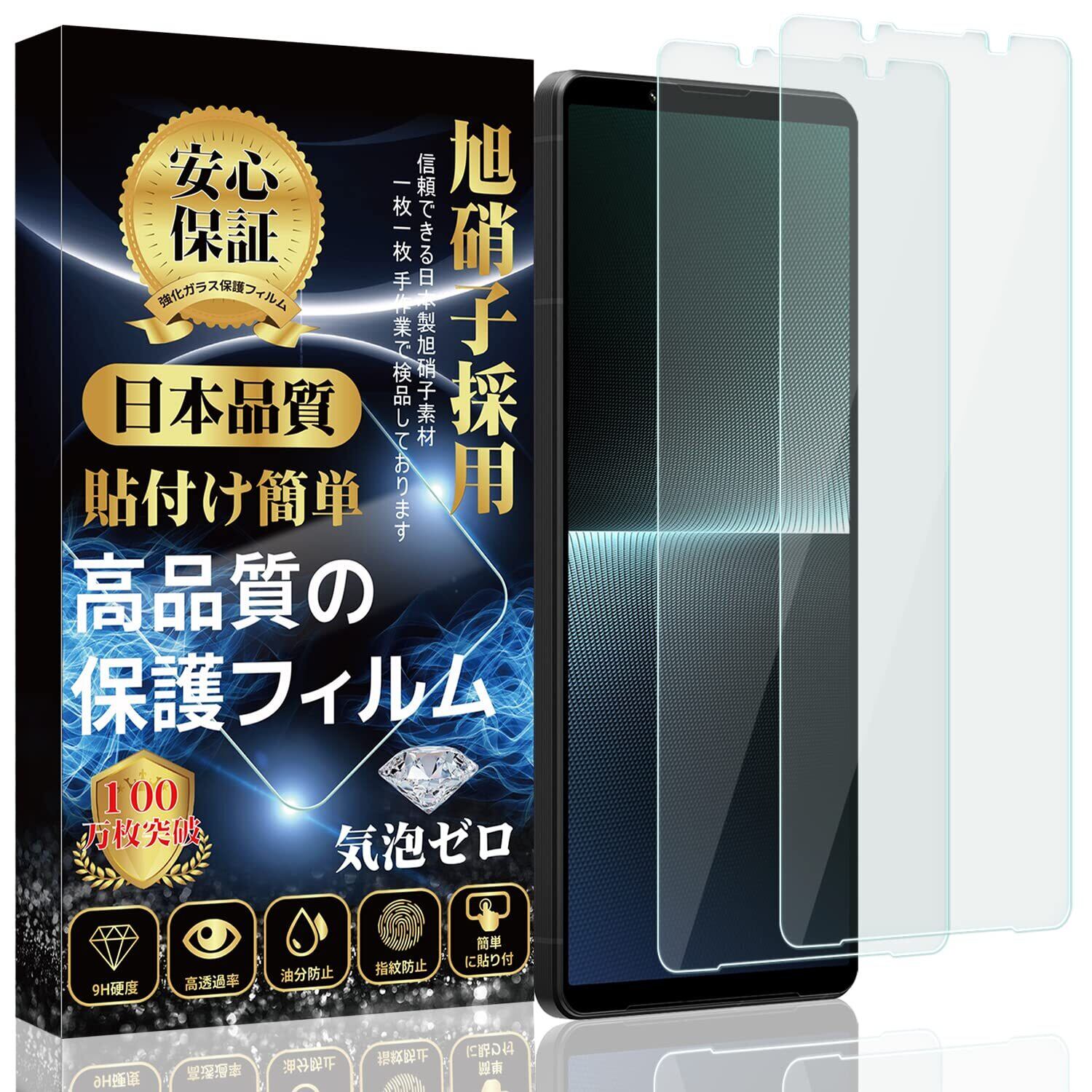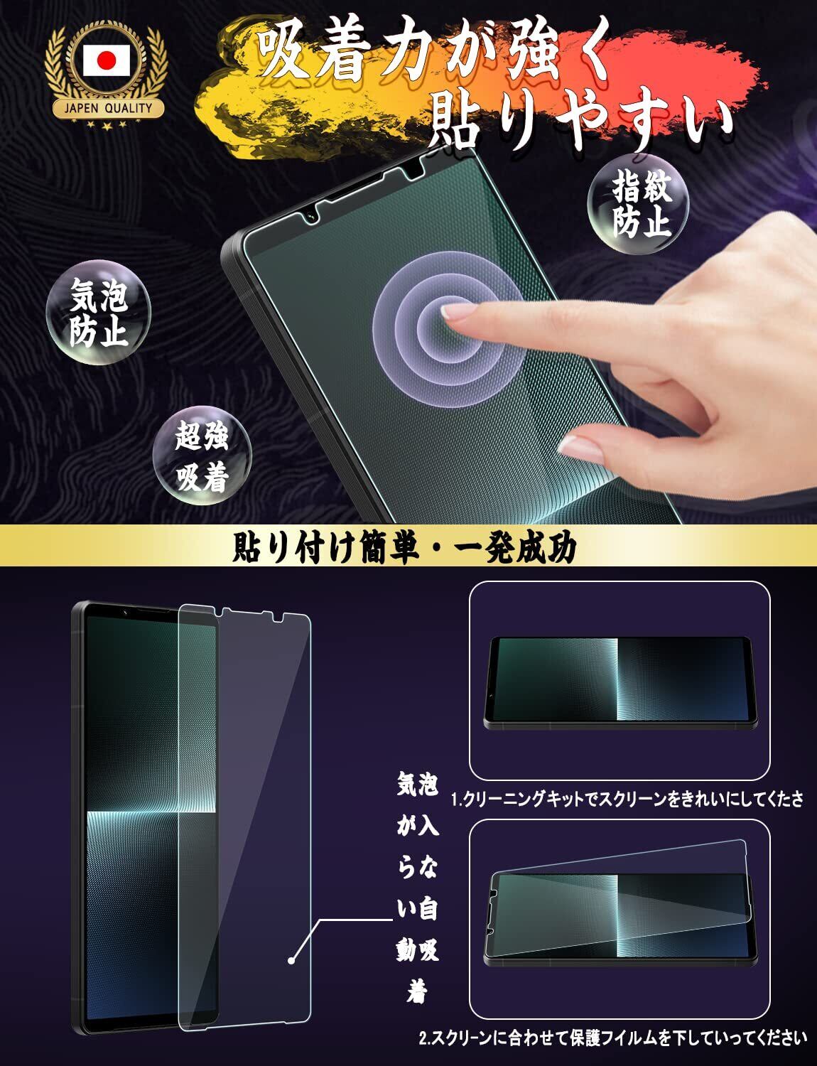 【2枚入り】Xperia 1 V ガラスフィルム フィルム SO-51D 全面保護フィルム SOG10 液晶強化ガラス【日本製素材旭硝子製】硬度9H 貼り付け簡単 自動吸着 気泡防止 指紋防止 飛散防止 撥水撥油 Xperia 1 V 液晶強化ガラス