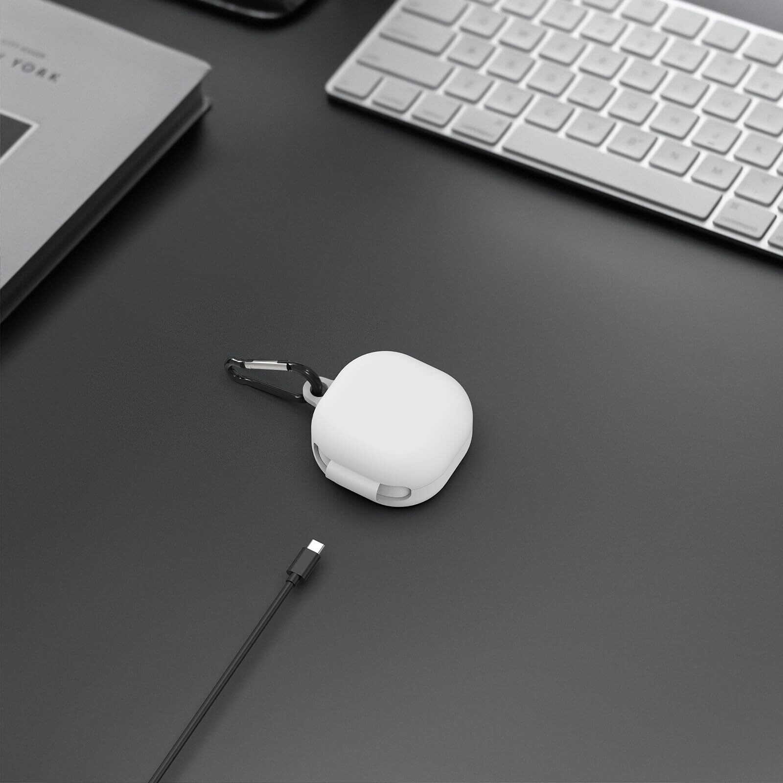 Geekria シリコンカバー 互換性 カバーサムスン Samsungs Galaxy Bud FE 対応充電ケース True Wireless Earbuds カバー 外装カバーキーホルダーフック付き、充電ポートアクセス可能(白)