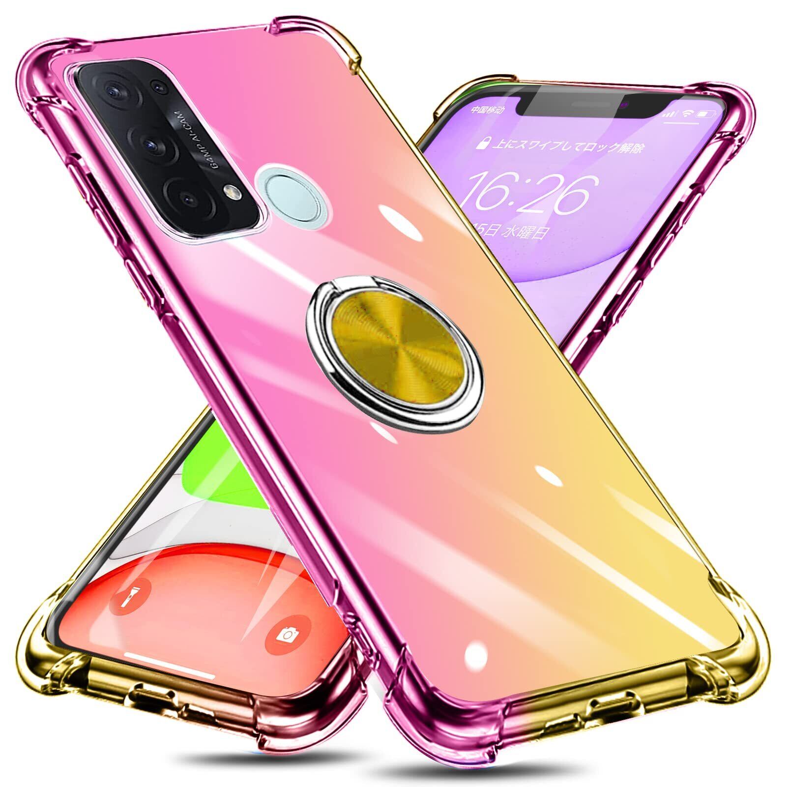 OPPO Reno5 A ケース リング付き クリア TPU グラデーション色 オッポ リノ レノ5 A 携帯カバー 耐衝撃 透明 車載ホルダー対応 一体型 落下防止 防塵 変形防止 全面保護 リノ5a オッポ カバー ピンク/ゴールド W-CSZH-18-01