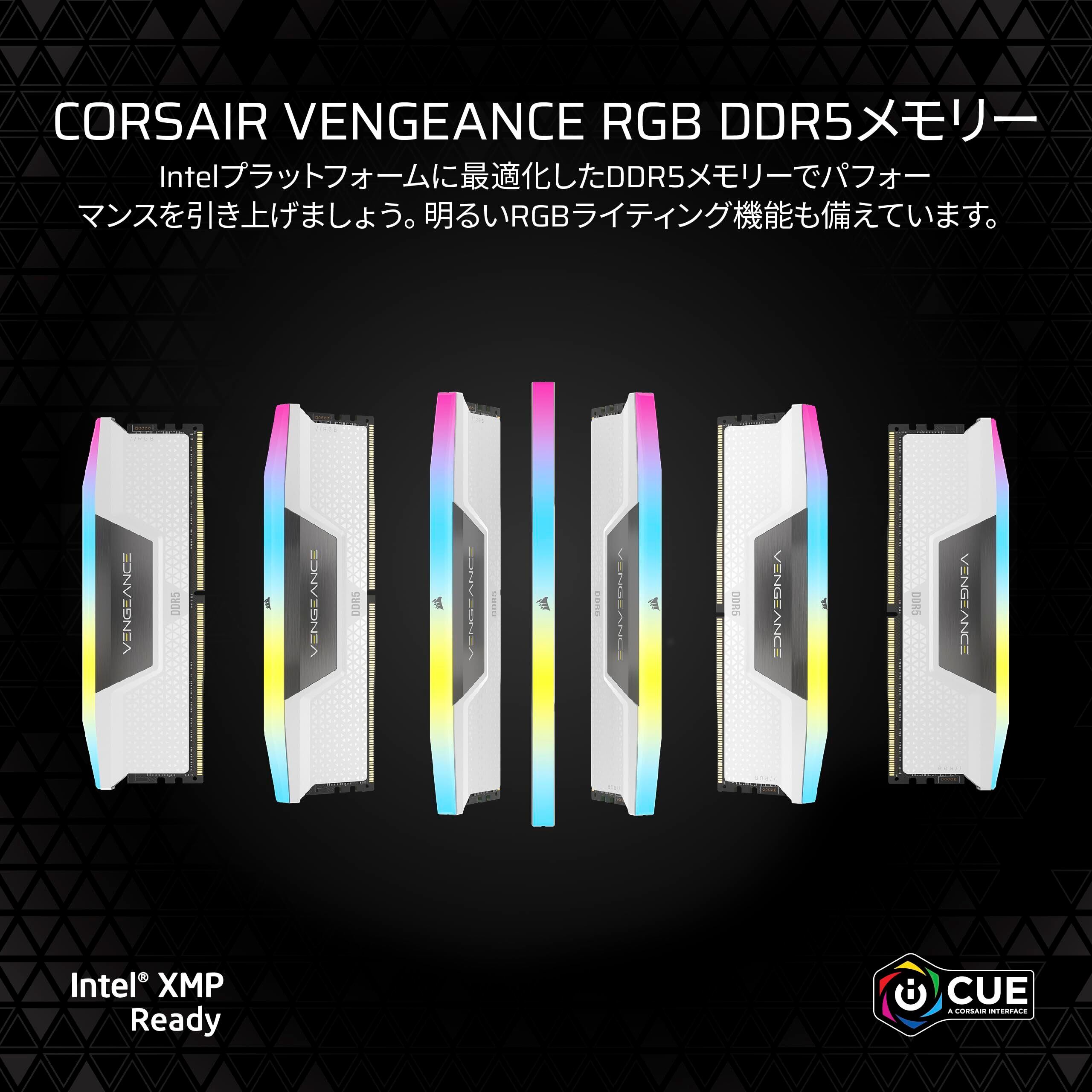 CORSAIR DDR5-6000MHz デスクトップPC用メモリ VENGEANCE RGB DDR5シリーズ (PC5-48000) Intel XMP メモリキット 32GB ホワイト [16GB×2枚] CMH32GX5M2E6000C36W