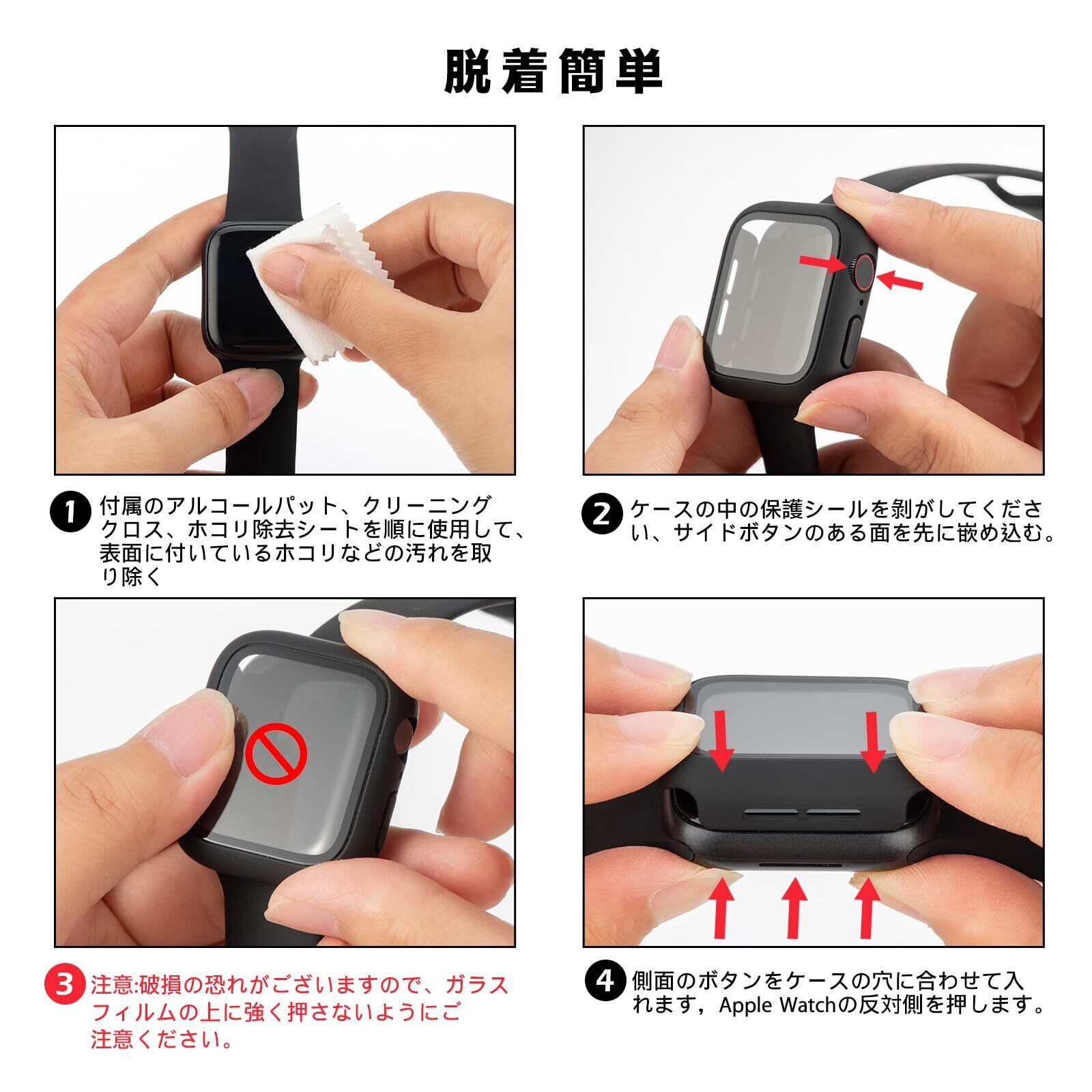 【ご注意】 本製品は防水仕様ではありませんので、水泳などの場合には適していません。運動中は、ケースと Watch の画面の隙間に汗が入り、タッチ操作に影響を与えることがあります。カバーを外してきれいな布で拭き取るだけです。 または、水泳、入浴、運動の前には、Watchを取り外してください。
