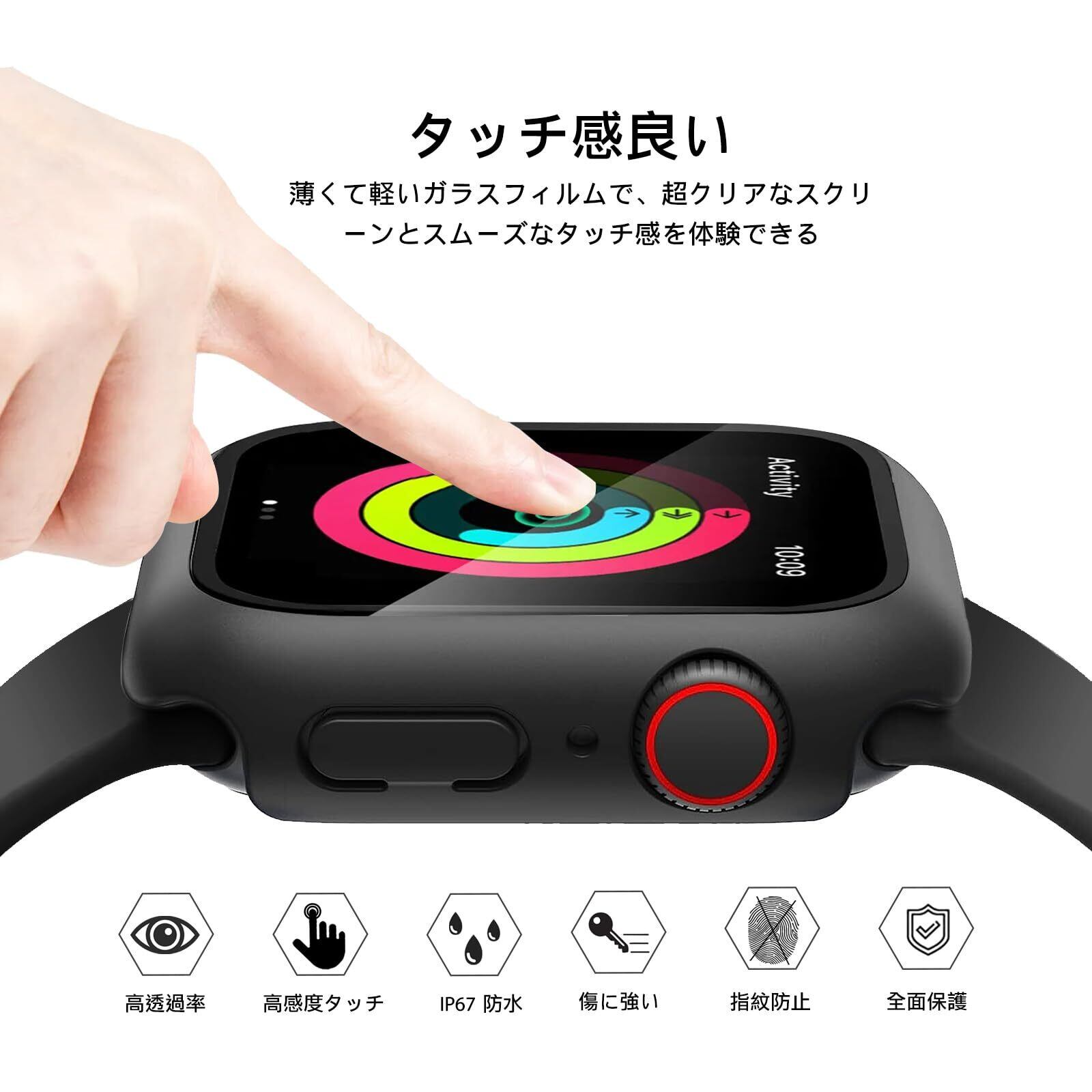 【全面保護】この製品はPC+ 強化ガラス素材を採用して、日常生活での衝撃から Watch を保護します。硬度 9H の強化ガラスで、超クリアな画面を提供して、なお画面の損傷を防止および回避し、 Watchをしかっり保護します。