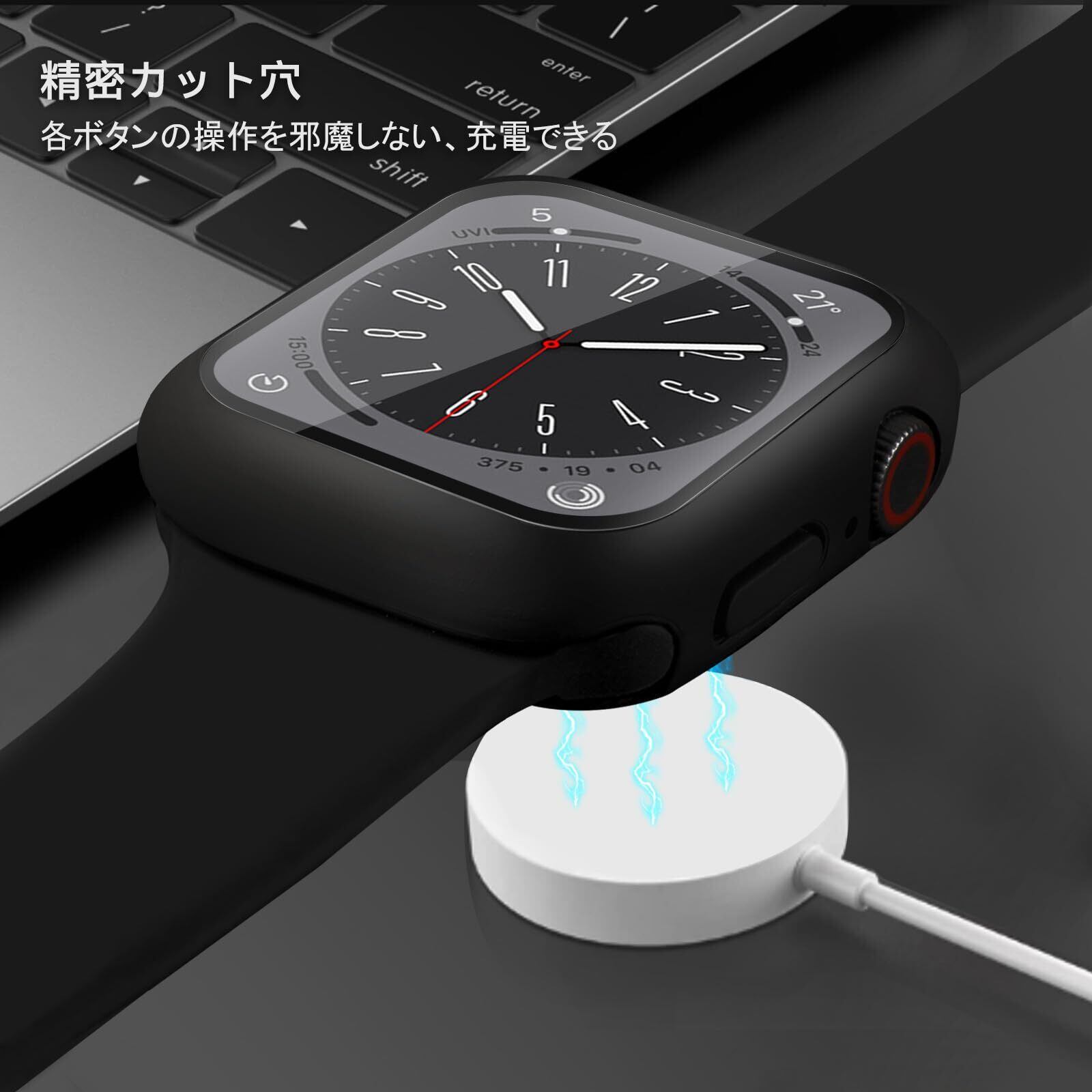 POLINK for Apple Watch用 ケース Series 10/9/8/7/6/5/4/SE2/SE 44mm PC素材 強化ガラス アップルウォッチ 保護用カバー 超薄型 高耐久 耐衝撃 高透過率 指紋防止 for Apple Watch用 カバー 全面保護 ブラック