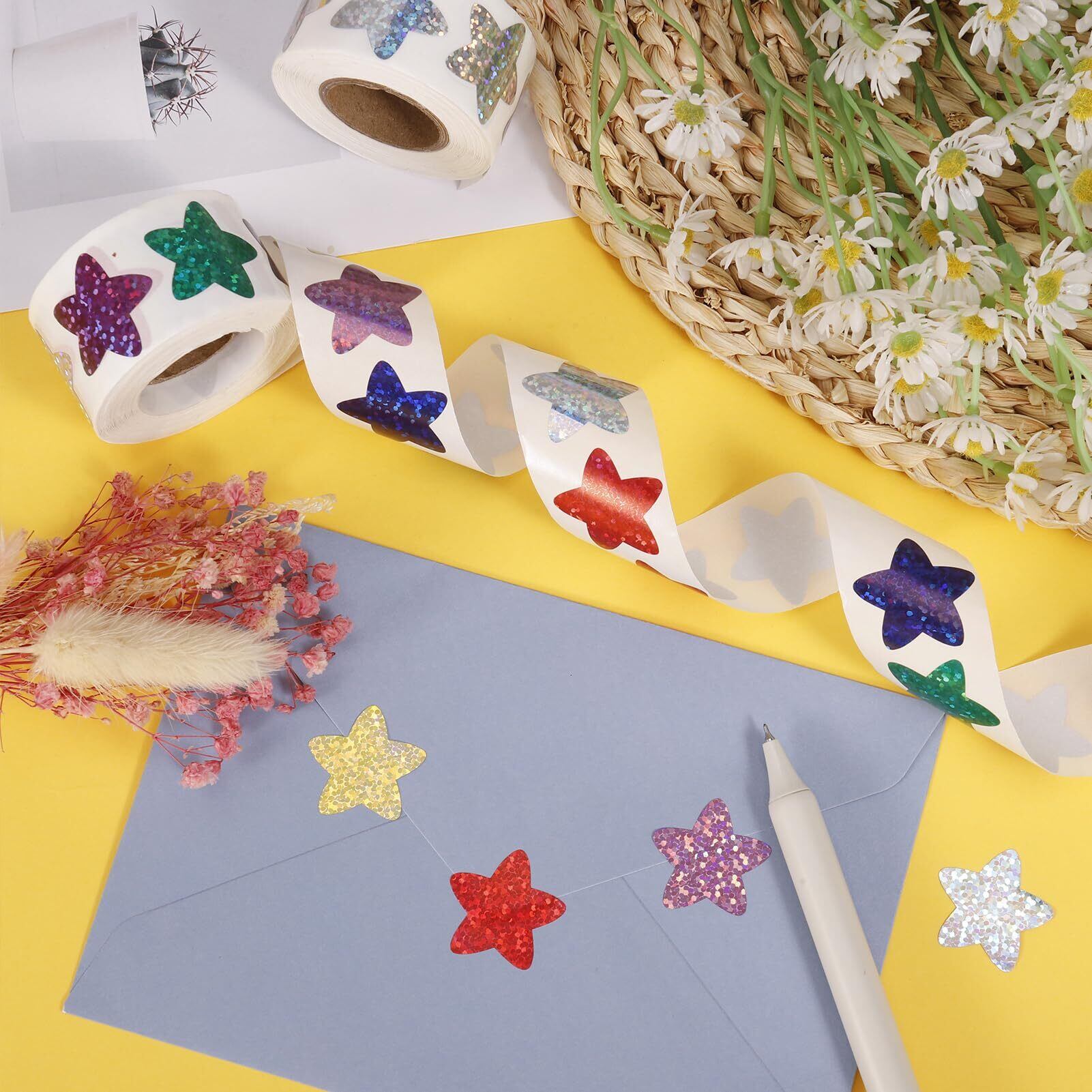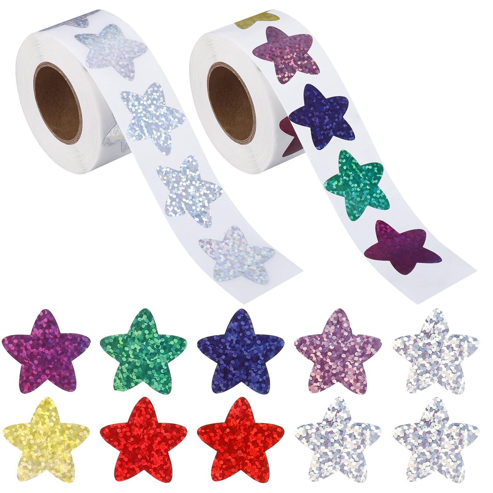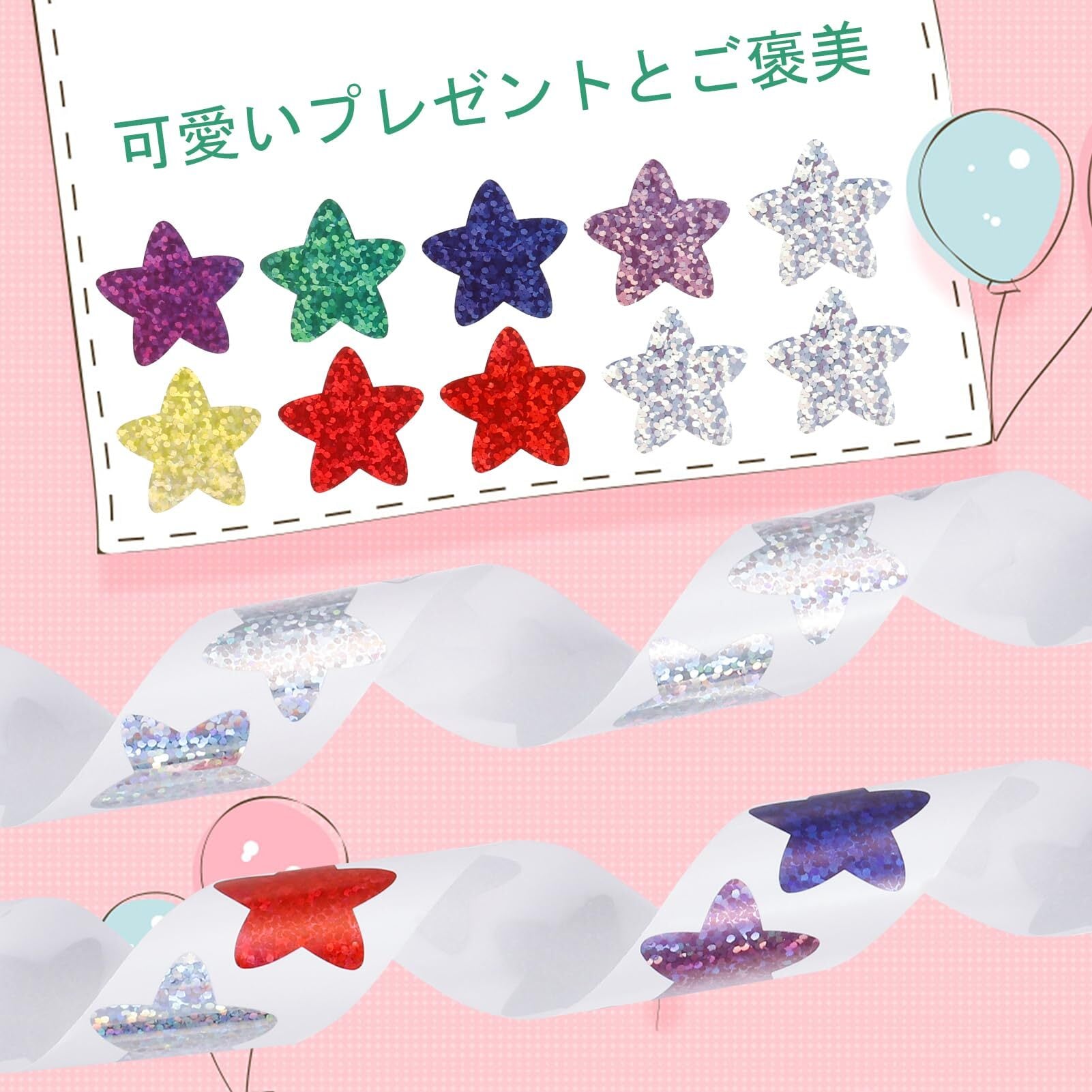 Hitchlike シール 星 約1000枚入り きらきら ごほうびシール 大量 カラフル 可愛い ステッカー ホログラムロールシール 手帳 飾り 日記デコレーション DIY