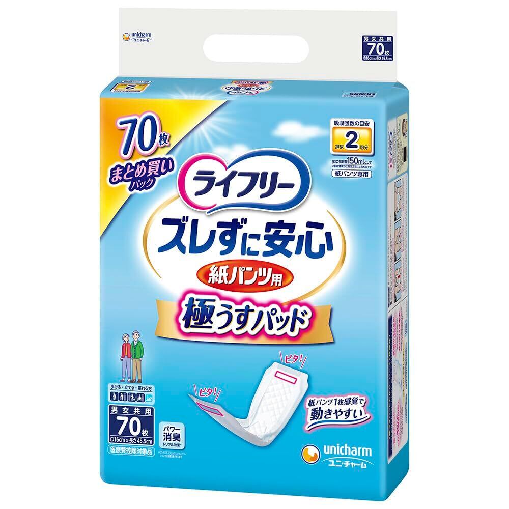 ライフリー パンツ用尿とりパッド ズレずに安心うす型紙パンツ専用 2回吸収 70枚 大人用おむつ 紙パンツ専用パッド
