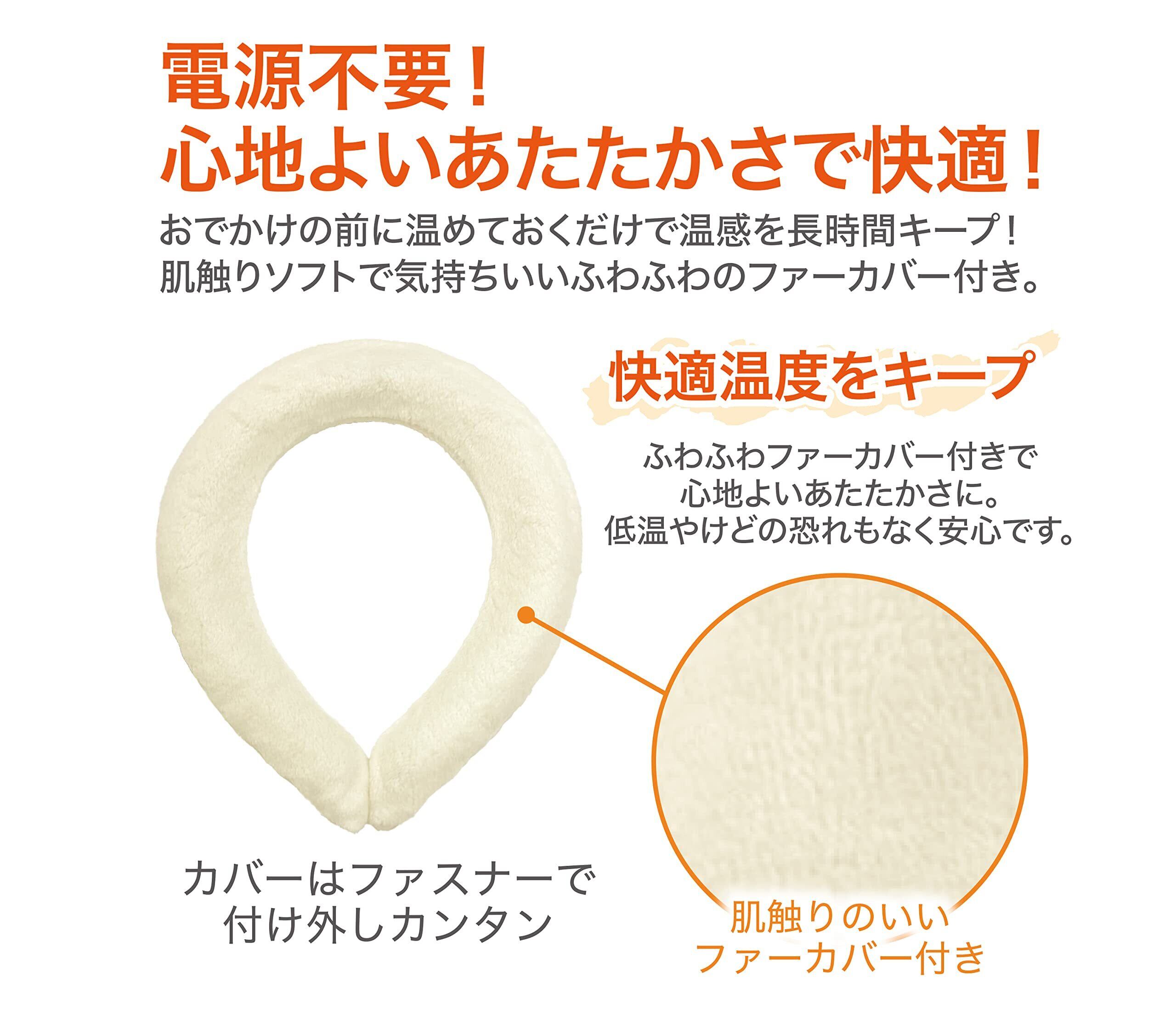 快適温度をキープ!ふわふわファーカバー付きで心地よい暖かさに。低温やけどの恐れもなく安心です。