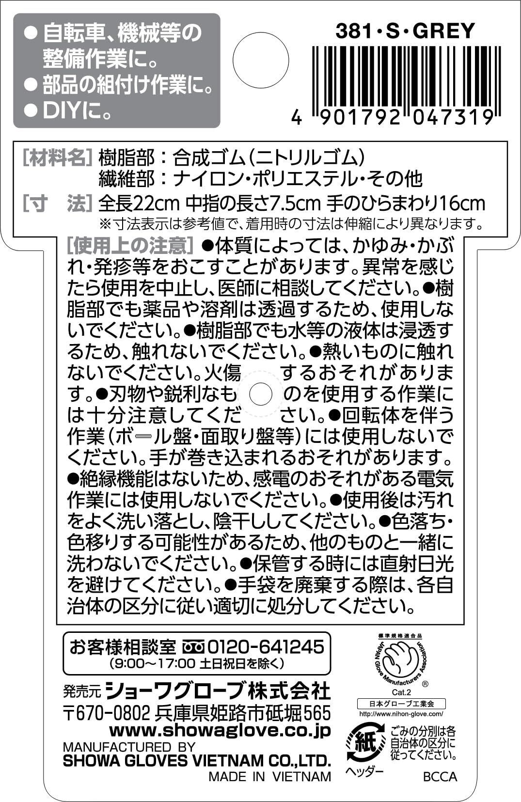 [ショーワグローブ] メンテナンス DIY フィット ムレにくい No.381 マイクログリップ フォームグレー Sサイズ 1双 作業用手袋 滑り止め