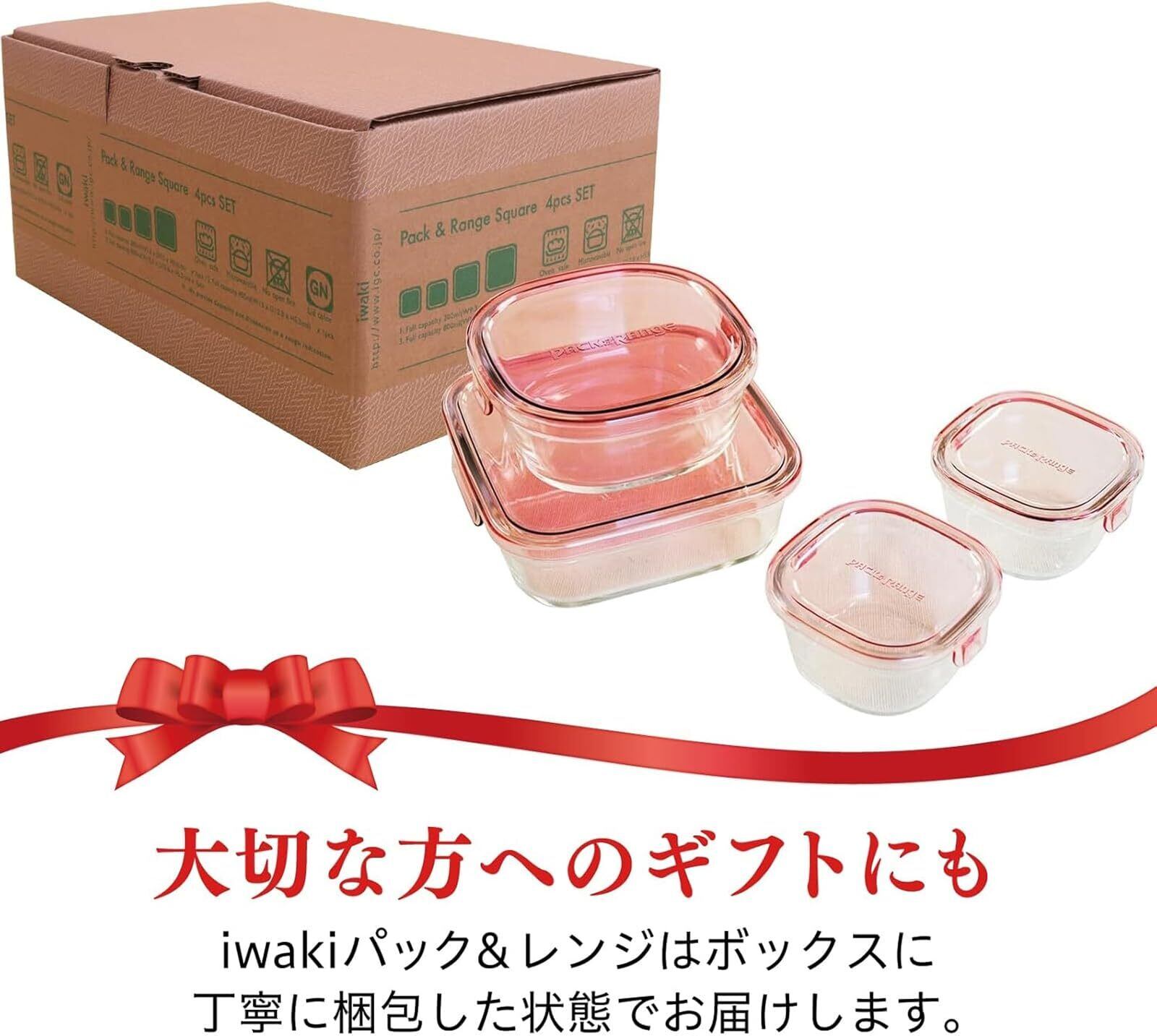iwaki(イワキ) 耐熱ガラス 保存容器 ピンク 角型 4個セット パック&レンジ PS-PRN-4P1