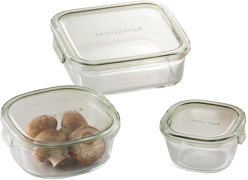 iwaki(イワキ) 耐熱ガラス 保存容器 オリーブグリーン 角型 3点セット パック&レンジ PC-PRN3G41