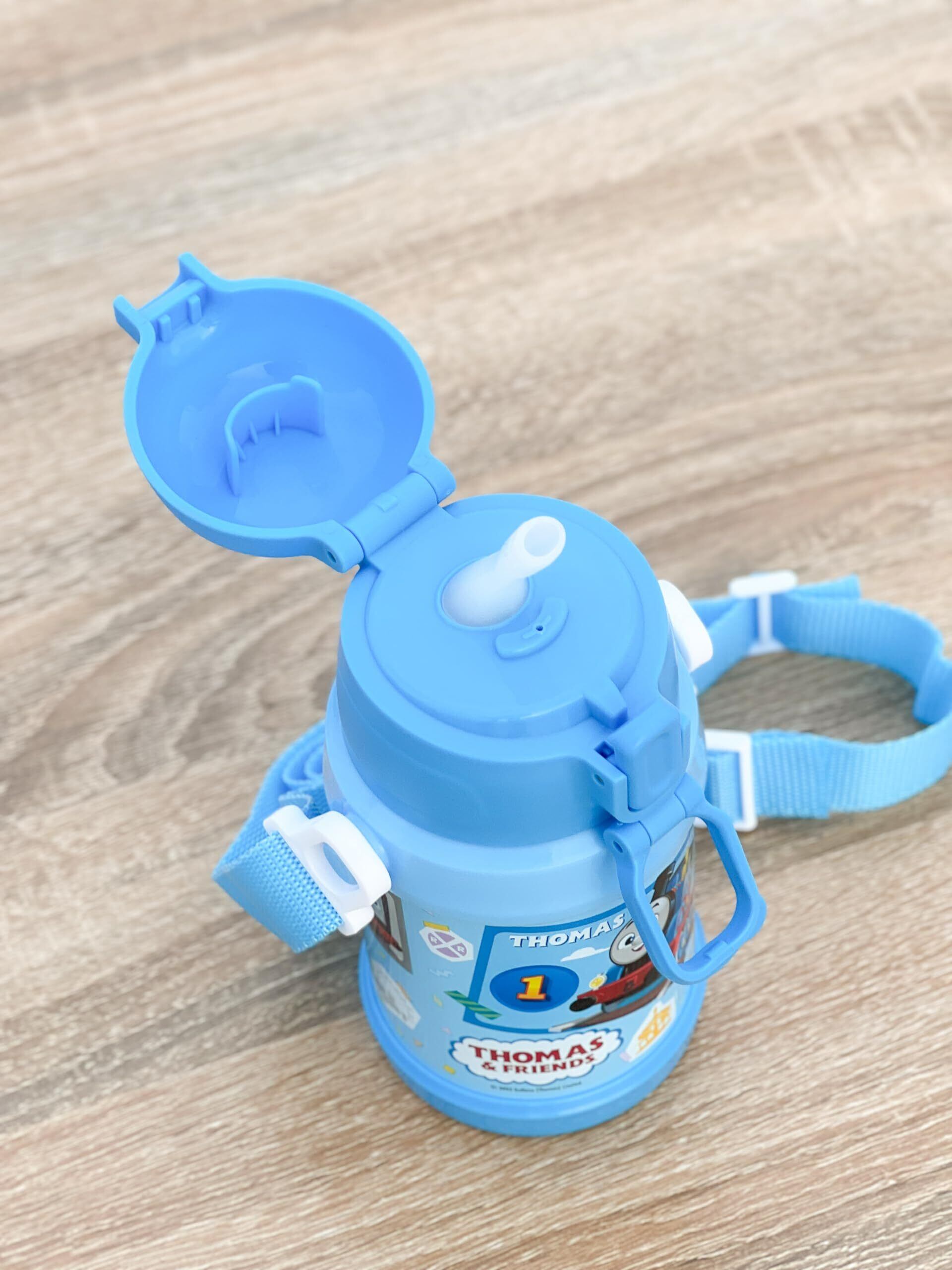 オーエスケー きかんしゃトーマス ストロー付きステンレスボトル ブルー 【SBR-450S】 ショルダーベルト付き