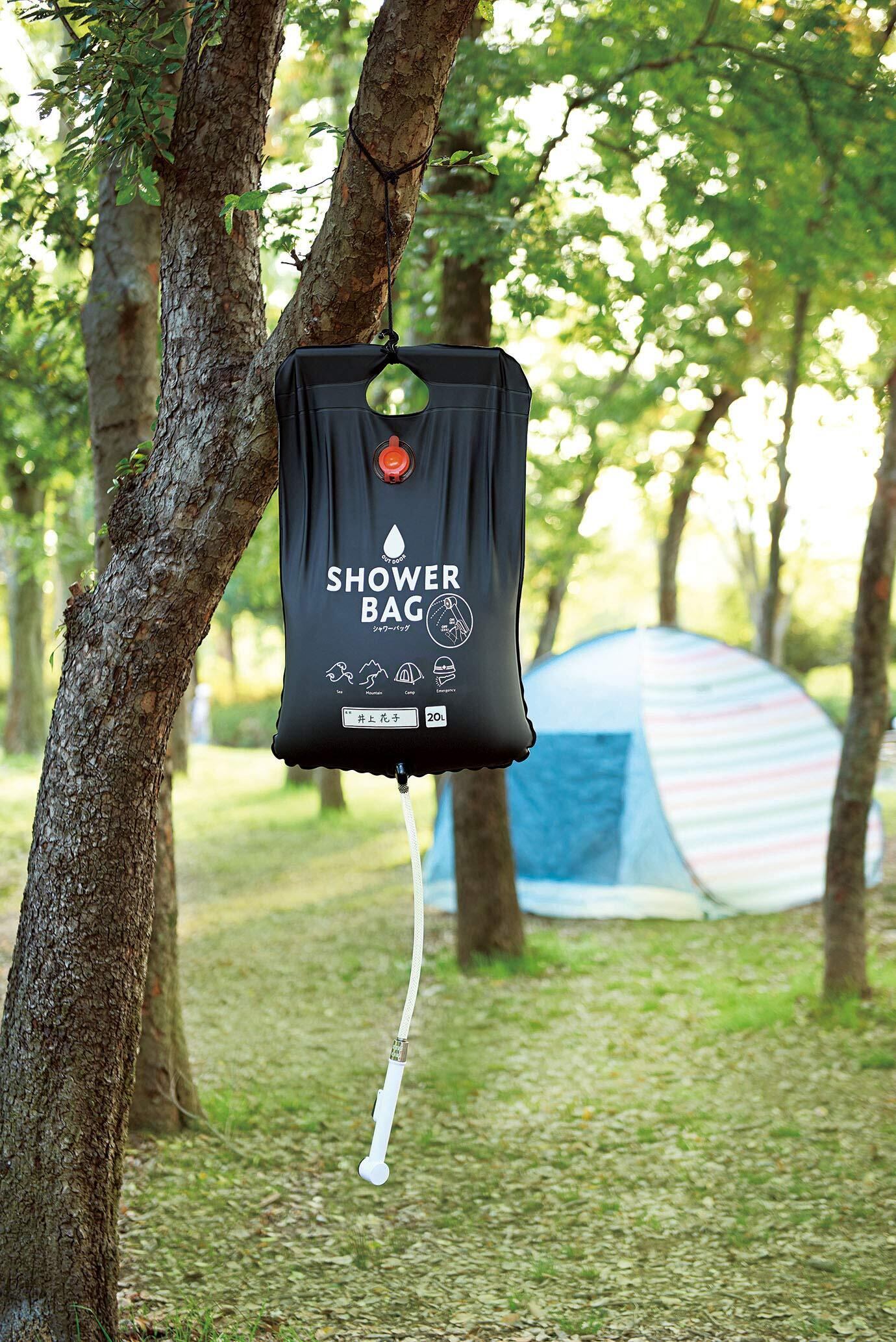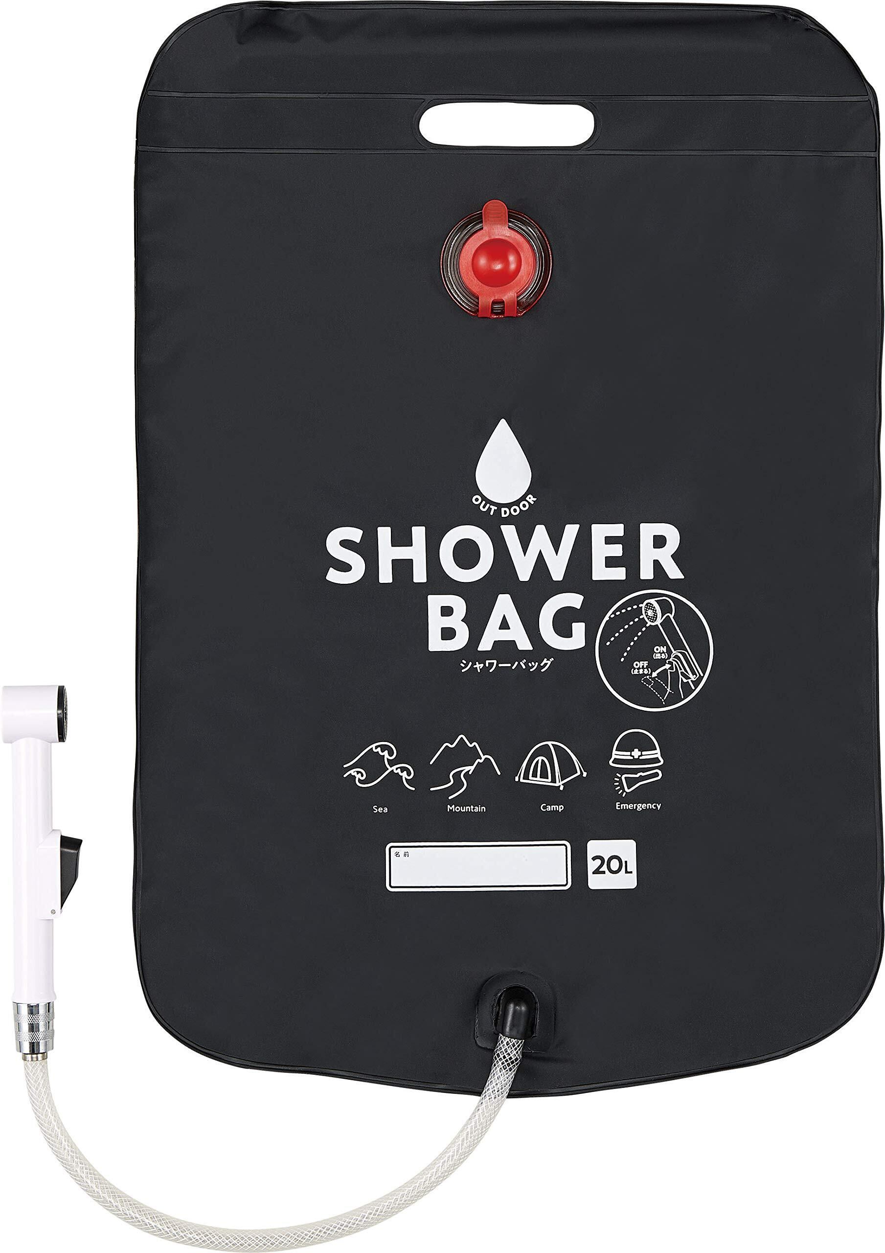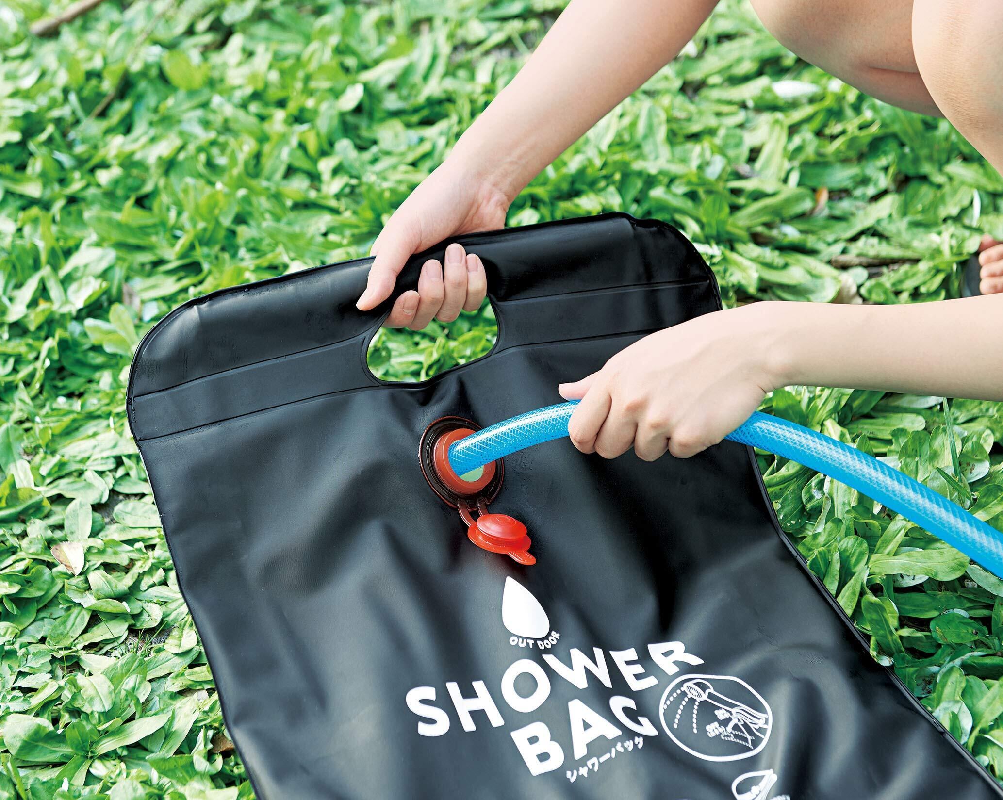 非常用 アウトドアの際にも簡単に持ち運べる 小さく保存!ストッパー付シャワーバッグ。 持ち運びができるポータブルシャワー。 海水浴やキャンプ、BBQに!災害時用としても。 太陽光の熱を黒色が吸収。水を温めて、利用できます。 ※水温は気温や季節、日照時間によって異なります。