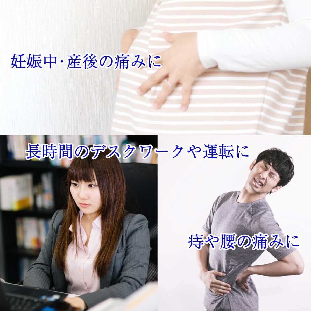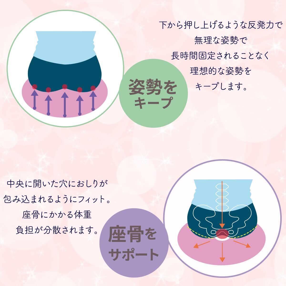 ●中央に開いた穴におしりが包み込まれるようにフィット。座骨かかる体重負担が分散されます。
