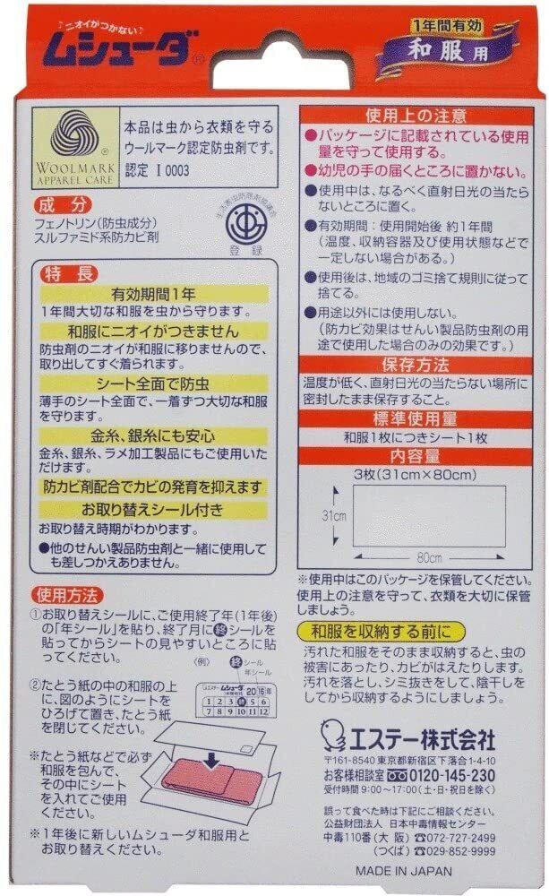 ムシューダ 1年間有効 防虫剤 和服用 着物 3枚入
