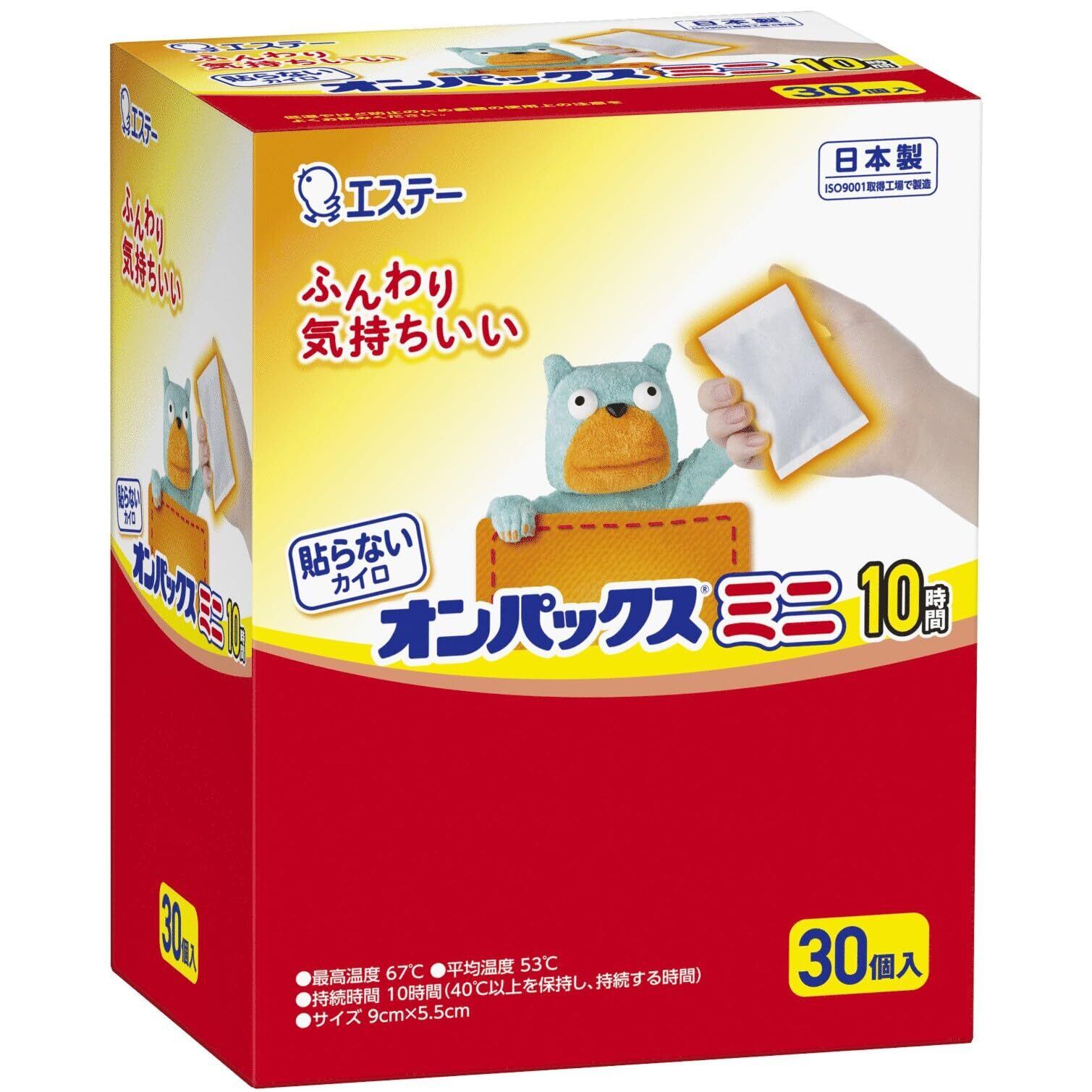 【スペック】最高温度:67℃ 平均温度:53℃ 持続時間:10時間(40℃以上を保持し、持続する時間)