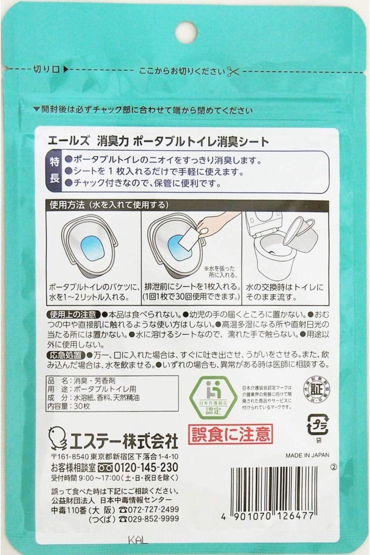 エールズ 消臭力 リキ 介護用消臭剤 [まとめ買い] ポータブルトイレ 消臭シート さわやかグリーンハーブ 30枚×2個 介護用品
