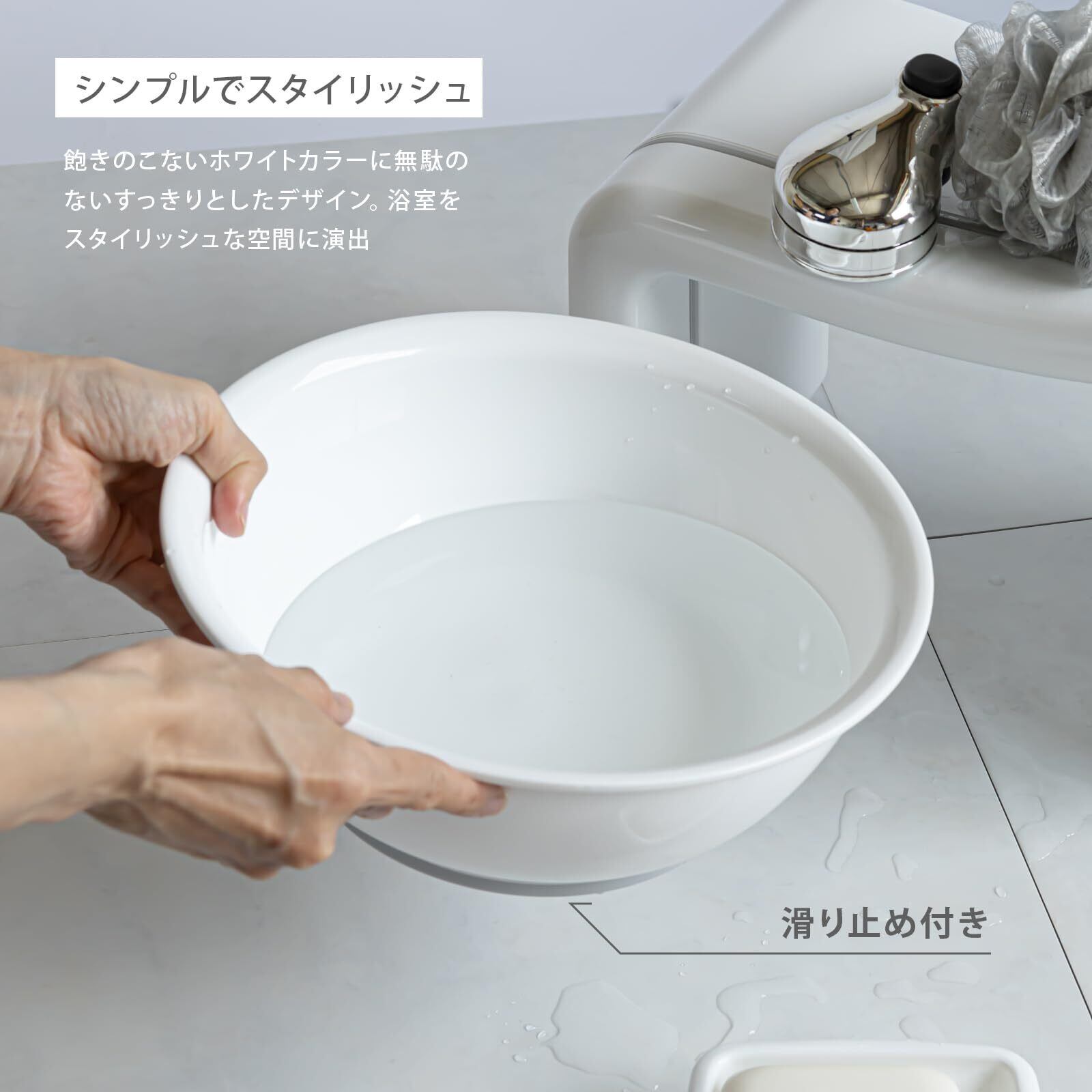 シンプルに白く、美しく。 飽きのこない、ホワイトカラーに ムダのないすっきりとしたデザイン。 かび、ぬめり防止加工を施しておりますので、日々のお掃除が簡単です。 脚部分に滑り止めのゴムが付いていますので、滑りにくく安定感があります。